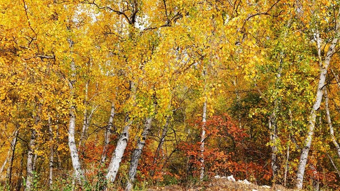 十月的桦木沟,五彩斑斓光和影在大地上变换出一个又一个神奇的场景,这里是仙境般的世外桃源,辽阔的草原,幽静的白桦林红树满山金色、黄色、等色彩组成了为赏心悦目的视觉感受,变换的色彩和光影,会让人有一种时光的错觉,感受天地是如此美妙动人。
