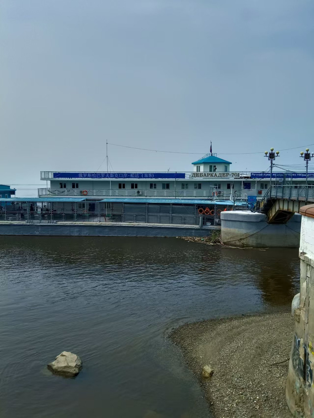 人员集合,办理出关手续等大约用了一小时,早六点我们乘船离开抚远码头,进入黑龙江航道,途中在航船上再一次看到了黑瞎子岛上的东极塔,两个小时后航船停靠在俄罗斯远东最大的城市哈巴罗斯克市的码头上,排队出关、查验行李等用了一个多小时,在码头上稍事停留后,我们跟随导游上了旅游大巴车,开始了游览哈巴的行程。
