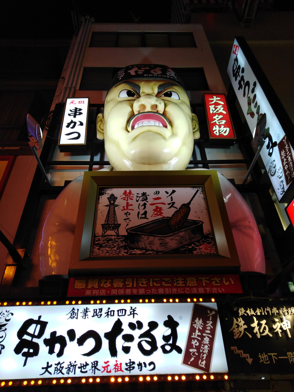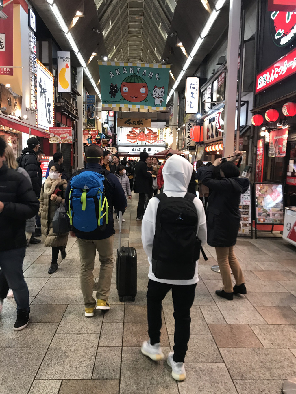 6:30自驾深圳湾,关口很冷清,第一次完全不用排队。打车到机场,航班几乎满员,实际航程三个小时(回来要4个多,有谁知道为什么吗)。坐列车到难波站(建议大家导航时先看看起点、终点的详情,如果只是一站路就不一定要转车了,走的距离差不多,还可以顺便逛逛),从车站北门出来,转右就是南海道,步行到大阪心斋桥格兰多酒店(含三早,两晚共1526,前台中文,推荐),路上先一顿寿司,放好行李,再来一顿板烧。