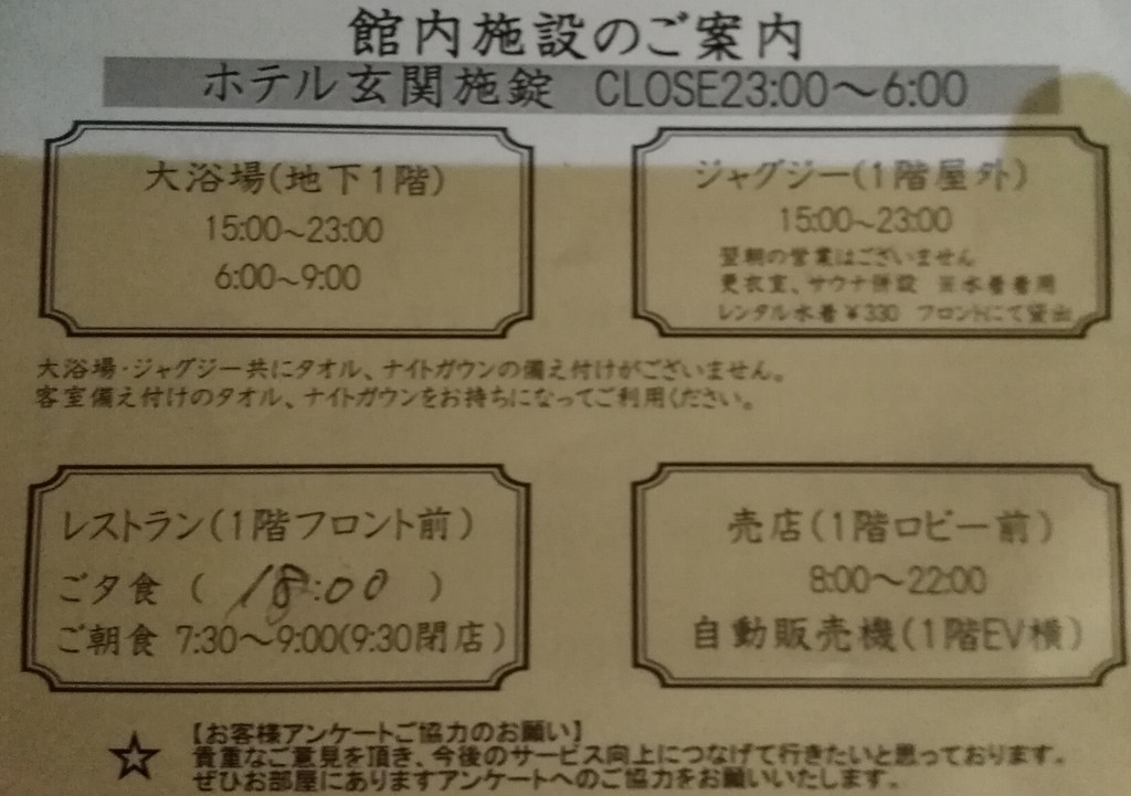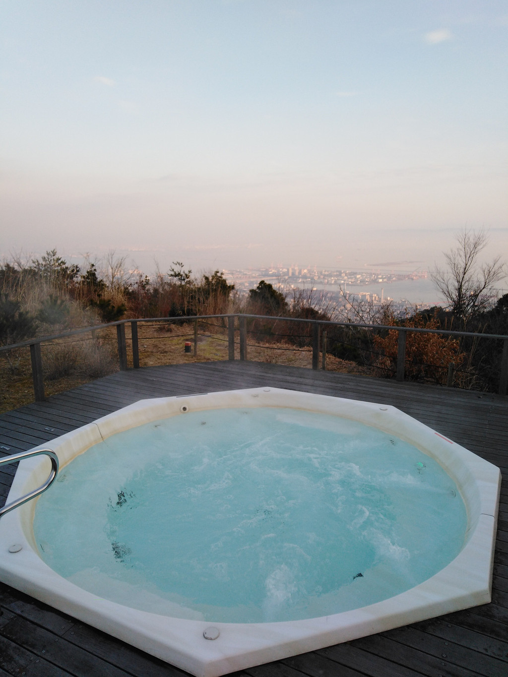 今晚入住摩耶山”玛雅酒店 Hotel de Maya“,两间房含三早三晚共2400+(重新预订的,价格没变),推荐。选择这里有三个原因:在摩耶山看神户港百万夜景、意大利式早晚餐、正对神户港的户外泡池。酒店去摩耶山掬星台只有几百米,看夜景很方便,据说在摩耶山看比六甲山更美;入住时会提醒晚餐服饰要求(我特意带了一件正规一点的衬衣),餐厅很安静(可能是周日吧,另外两桌都是日本单身女士),服务专业热情,葡萄酒也是两三百一瓶,不贵;户外泡池要穿泳装(只有我们两公婆在,其实不穿也可以),租也就300日元,旁边小木屋内还有桑拿,面对神户夜景、在寒风中鸳鸯戏水,享受。泡池的平台向东面海,是看日出的好位置。酒店B1层也有男女分开的泡池,早上我去包场了。