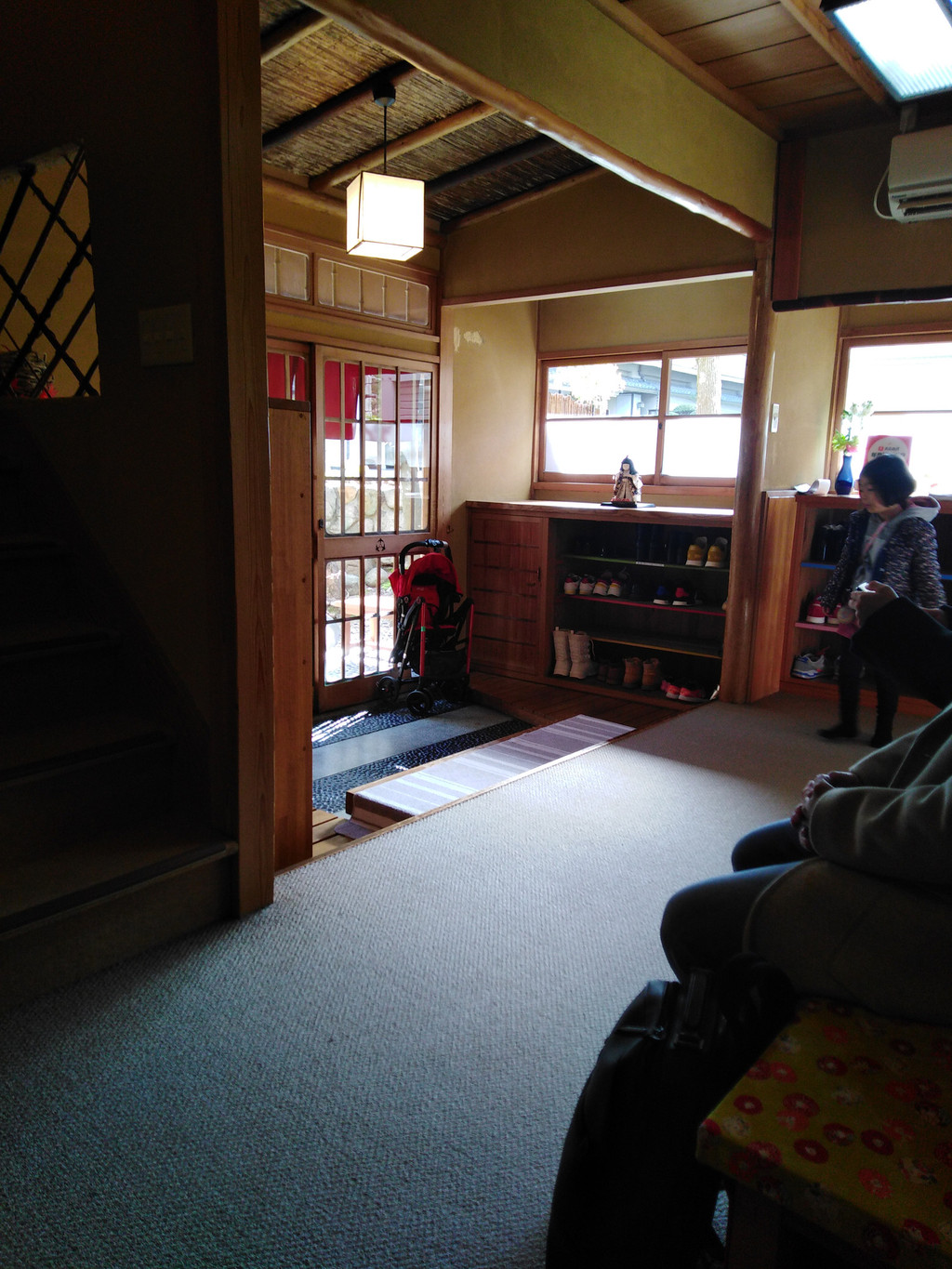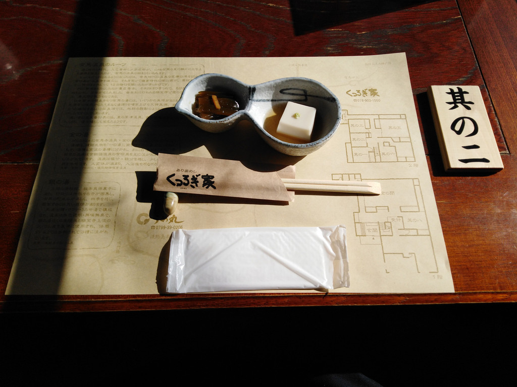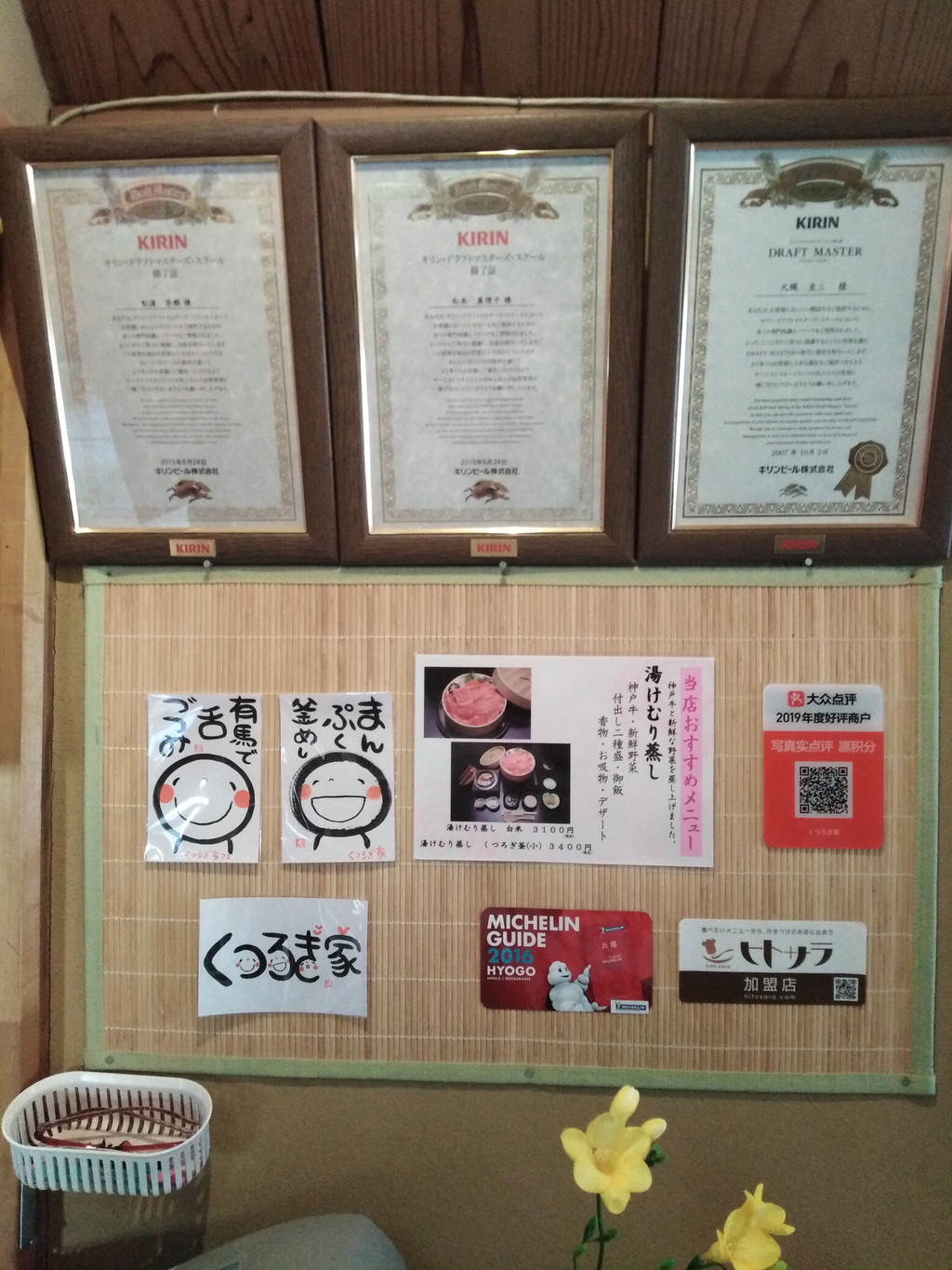看到一家饭店的门口很漂亮(くつろぎ家、兵库县神户市北区有马町839-2),以为没人,但推门一看,好多人咧,好,就这家了,脱鞋排队。饭后拿着牌子下楼买单就是了。