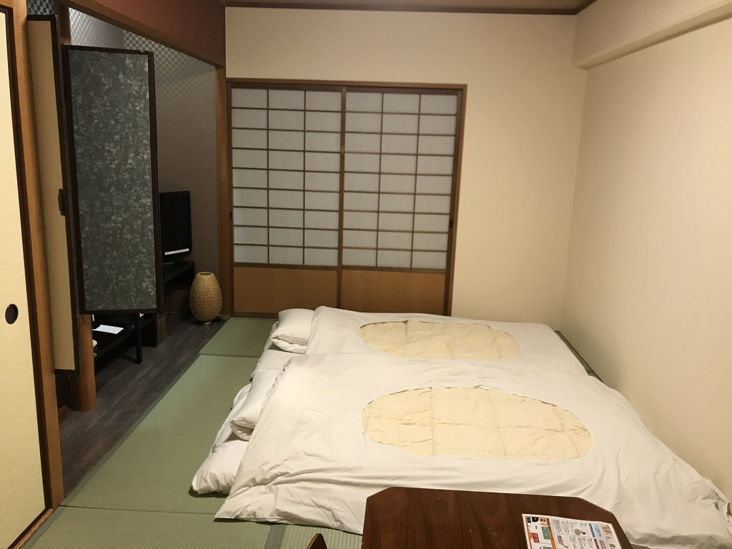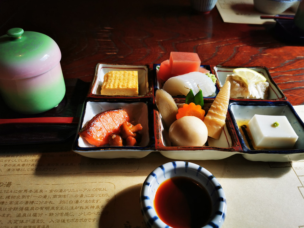 由于重新预订已退掉的“有马KIRARI”要贵两千多(原来三早三晚才2900+),所以就改订了“有马枫叶酒店 Maple Arima”。日本酒店大都按人头计费,比较过和一间三人房价钱差不多后,就订了两间房,儿子自己睡,两公婆可以好好二人世界,包三早三晚共3600+。但如果能提前低价预订,还是建议订有金汤和私汤的。该酒店在有马算是便宜的,服务很好,早晚餐精美,有两个銀汤浴场,早晚男女互换,可以穿房间的和服过去,在更衣室有篮子装衣服,然后人光光的只带个小毛巾进去,进去后淋浴干净再泡,期间再坐小凳慢慢搓澡,很舒服。入住时,前台会问你晚饭的时间,去用餐时就会帮你铺好榻榻米,房间很舒服,还有小阳台。好像退房时有金汤、银汤的卷送,因为我们第二天上六甲山滑雪,所以也没问了。日本传统温泉酒店的房间一般,贵在温泉和餐食的水准,也可以预订不包晚餐的,镇上有很多好吃的店,不过要早点去,晚了就关门了。