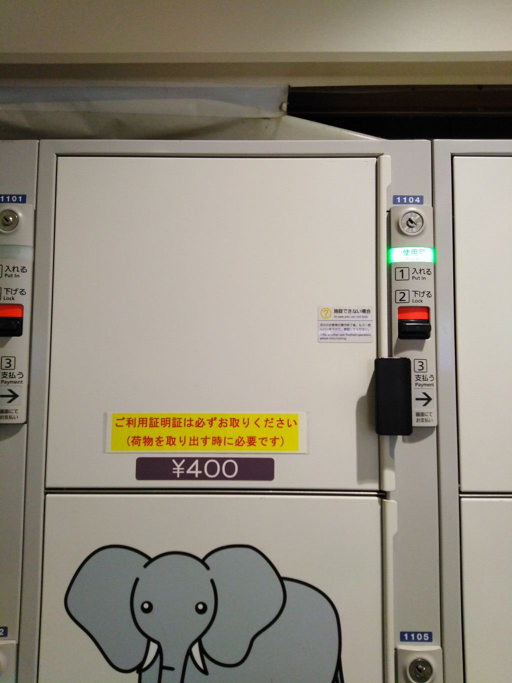 在梅田站寄存拖箱(考虑有马温泉的路很陡和担心缆车不让带拖箱),能放19寸的要400日/天,存放后的小票要保管好,取行李时要扫描的。