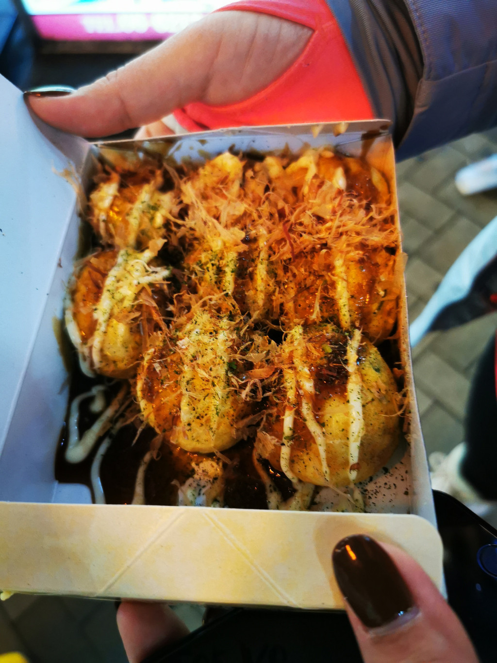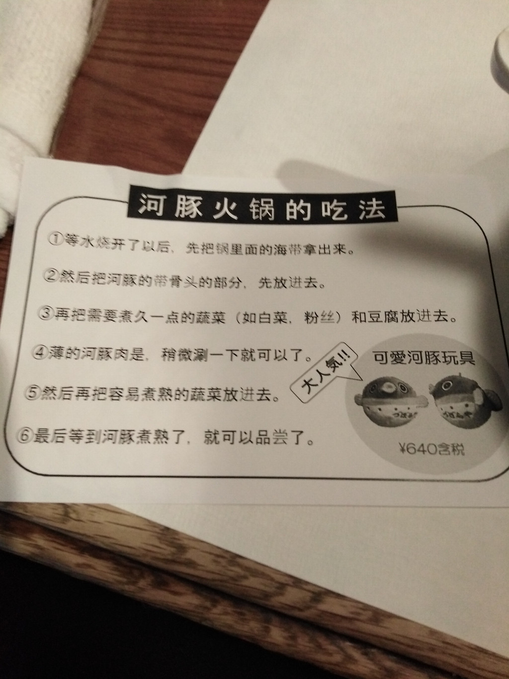 早餐后,步行前往大阪城,虽然有点远(3KM),但天气好、街道整洁,这样逛逛,反而能遇到地道的街市、面馆、咖啡馆。上天守阁要600日/人、15岁以下免。回来午睡后,晚上继续道顿屈,第一次吃河豚,野生套餐11000日(不是野生的便宜几千),没什么特别,反而是泡饭好吃,儿子把锅刮得干干净净。饭后他还淘到了打折的心头好