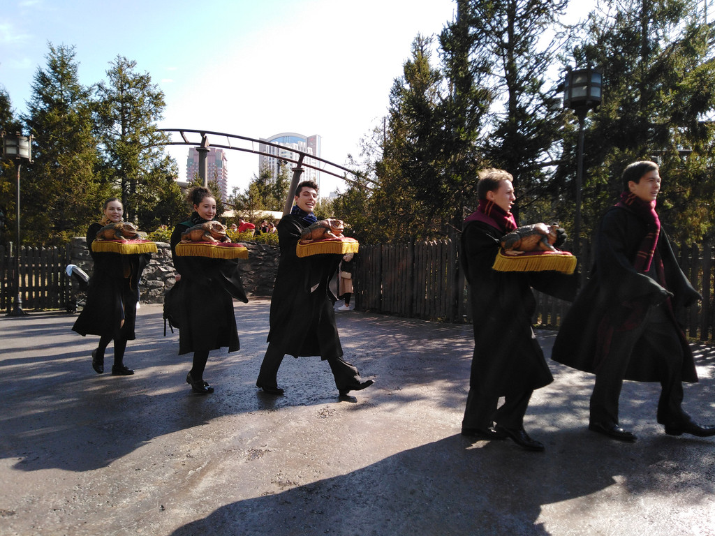 约九点到影城,虽然还是很多人,但应该比平时少很多了,我们也没有什么排队攻略,心情轻松,玩到那里就那里,过山车排了20分钟、哈利波特排了30分钟,出来刚好赶上看水世界表演,玩累了六点多就回酒店,没看到晚上的表演,下次吧。