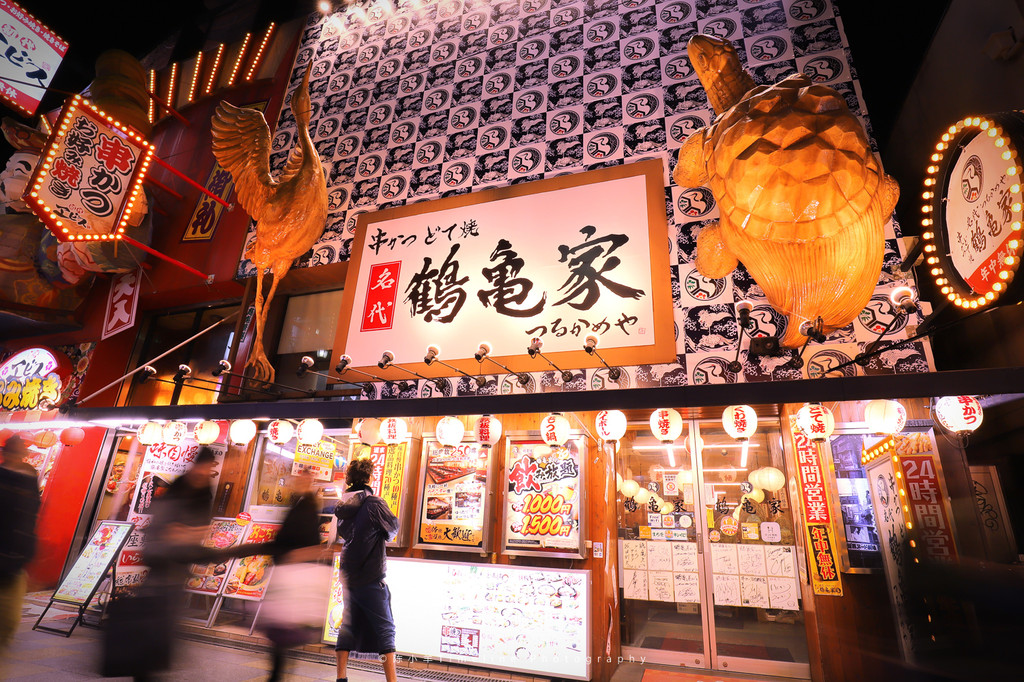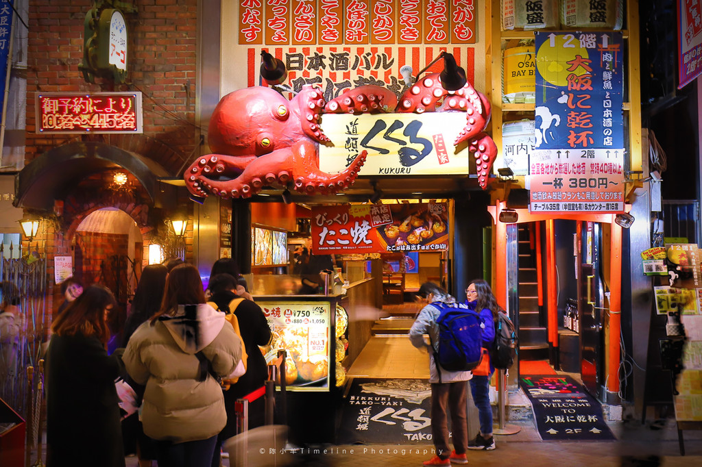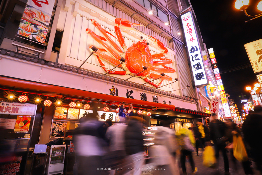 道顿堀的街道巷弄里遍布着居酒屋、餐厅及酒吧。这里的螃蟹餐厅相当有名。