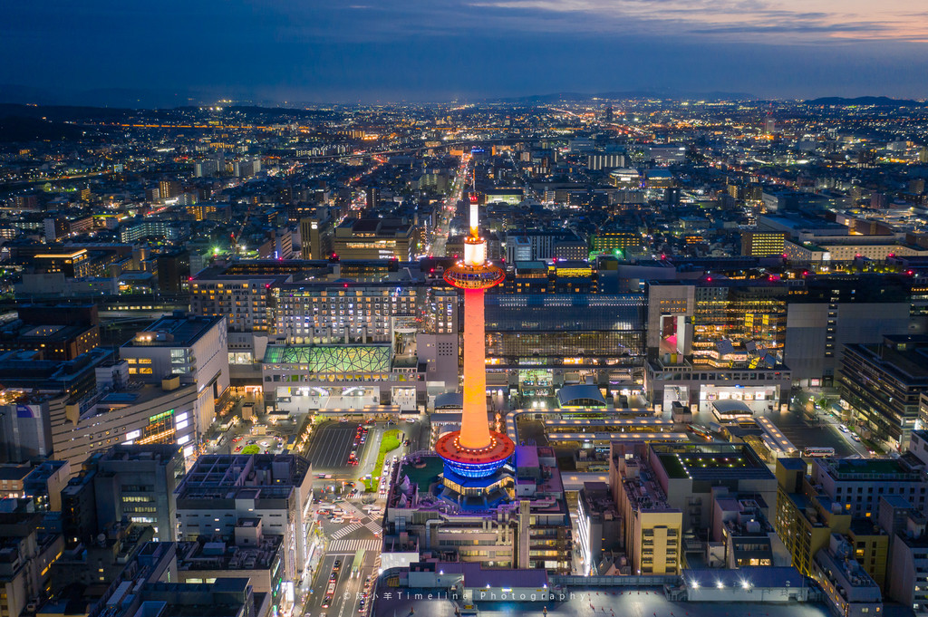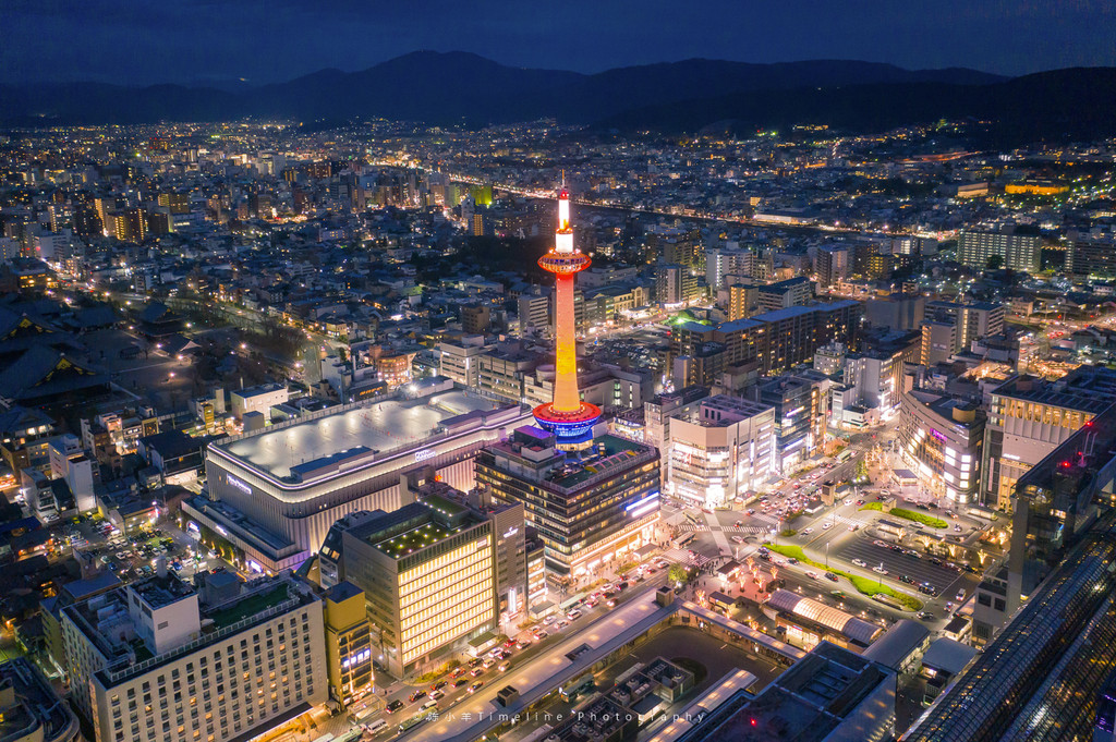 而站外的京都电视塔,则是以古都自居的京都难得的现代化高层建筑,也是京都的最高楼。