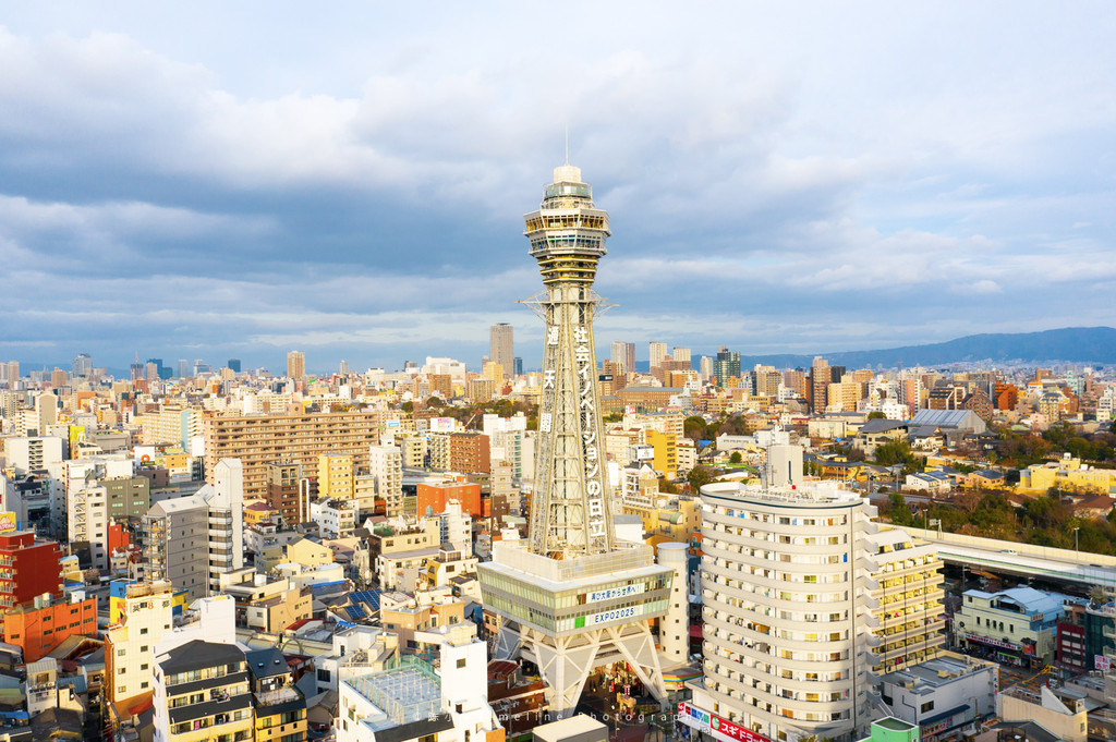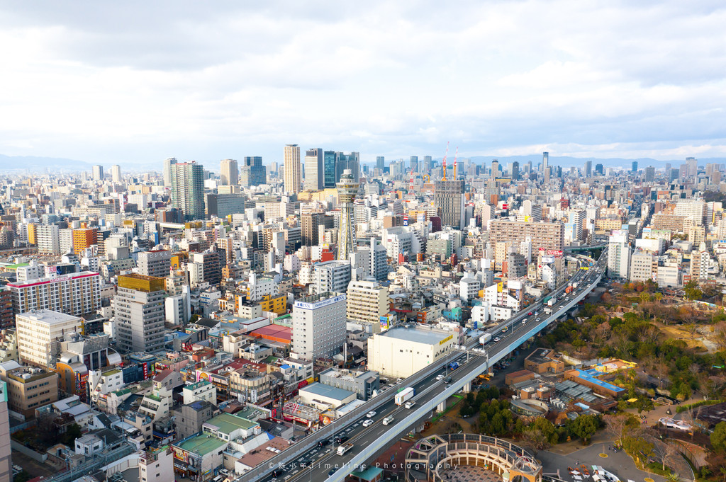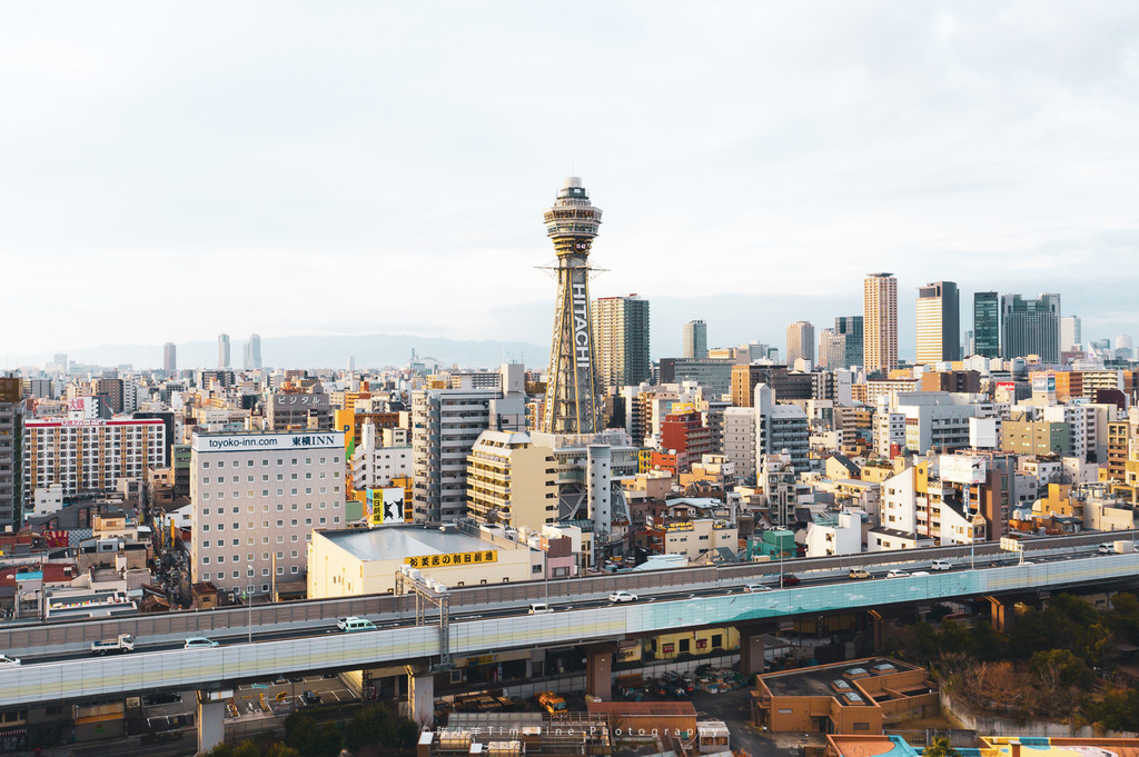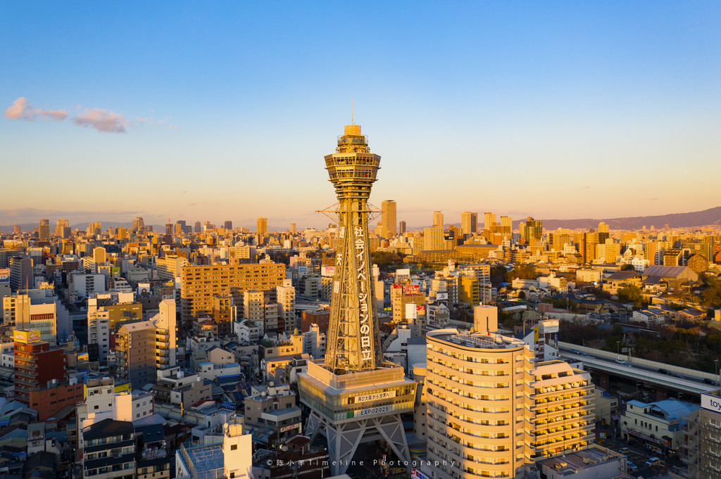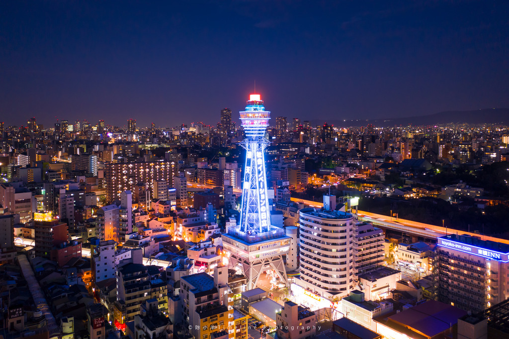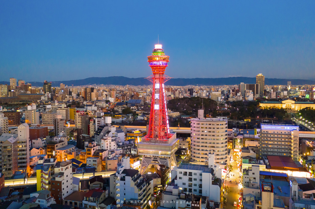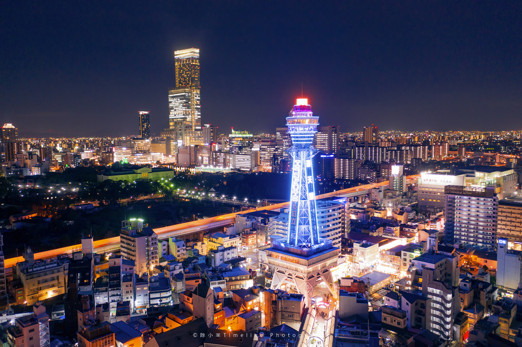 大阪两座标志性建筑——通天阁和阿倍野遥相呼应。