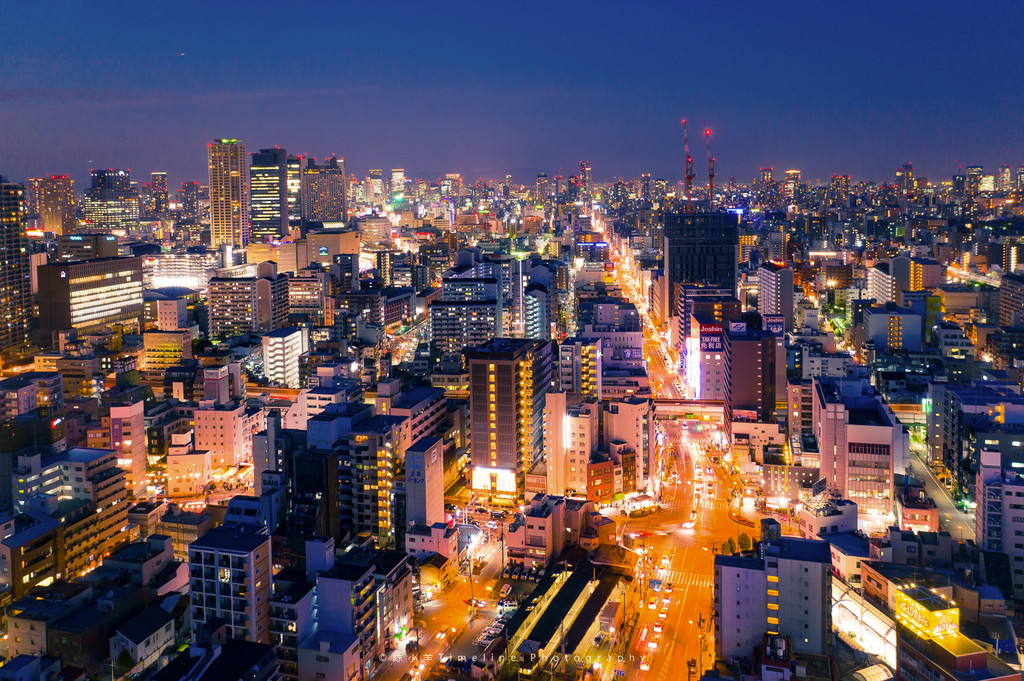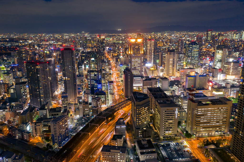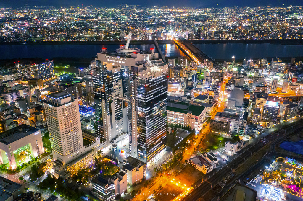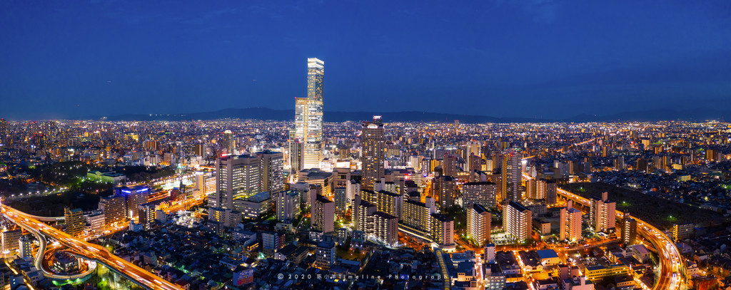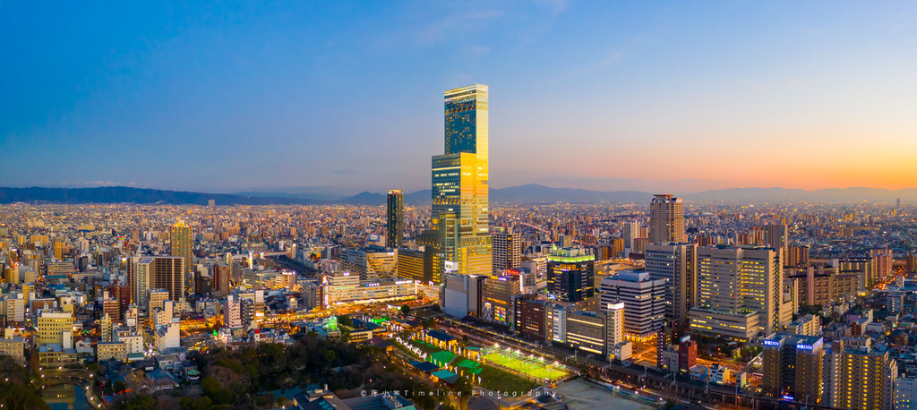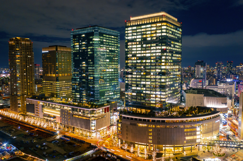 在这里等待日落拍摄夜景。梅田是整个大阪最具“曼哈顿”气质的区域,密集的摩天大楼群,在华灯初上之时,尽显大阪的现代化和繁华。