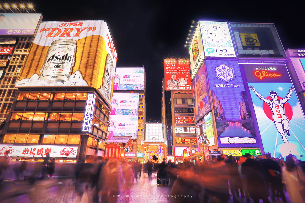 炫目的灯光与繁华的都市----这就是独特的大阪风格。图为大阪最最最标志性的景点——心斋桥及四周密集的户外广告牌。这里就是大阪的“曼哈顿”和“时代广场”!