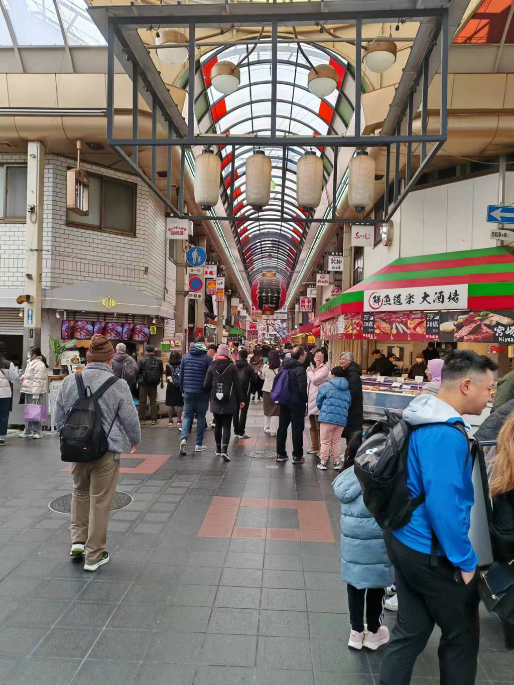(2)3月10日:大阪游玩,中午去了黑门市场,蛮有特色的海鲜市场,算是个必打卡的地方,售卖各种当天新进的海鲜、水果和小吃。想吃熟的,可以现做。我们烤了个帝王蟹的蟹腿吃了,确实挺新鲜,很好吃,又买了点其他小吃,算是吃了中饭了,下午,就是逛街,一路逛到心斋桥附近的大商场。看到了很多大品牌的旗舰店。在优衣库进行了消费,比国内还是便宜。又买了几双运动鞋,最后去了NB的旗舰店,买到了我想要的高端型号的运动鞋。吃好饭又去逛了下堂吉诃德(惊安的堂),心斋桥那家晚上人太多了,不建议在这家购买。总体来说,堂吉诃德的价格优势有所降低,好在是种类较齐全,还有各种优惠券;