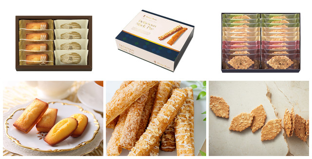本馆地下一楼的西点专柜更是聚集了神户各大人气西点店铺!是甜品爱好者忍不住驻足的地方。这里给大家推荐几款诞生于神户的西点店的人气商品。首先是“HENRI CHARPENTIER”的人气商品费南雪・玛德琳蛋糕套盒(8个装),以杏仁香味著称的费南雪蛋糕外酥里软,还带有浓郁的黄油风味。还有自创业以来就备受大家喜爱的玛德琳蛋糕,则是有着细腻的甜味和微香的朗姆酒和柠檬香气的绝品。接下来介绍的是非常适合作为神户伴手礼,来自“Konigs Krone”家的法棍派(10个装),使用了大量新鲜黄油烘培,香脆可口,食用方便。还有来自“Morozoff”的Feuillage点心,烤得香脆的树叶型饼干,表层铺满了坚果片,里层夹着满满的巧克力,高级感十足,也是作为伴手礼的人气商品。地下的西点专柜还有许多神户特色风味的高级点心,一定记得来逛一逛找寻自己喜爱的那一款哦。