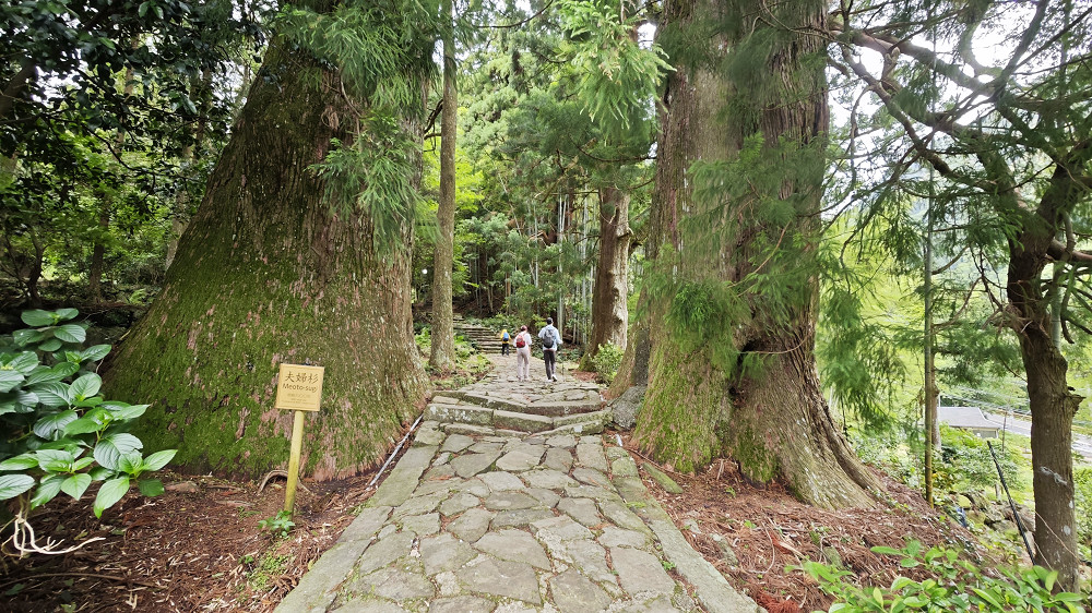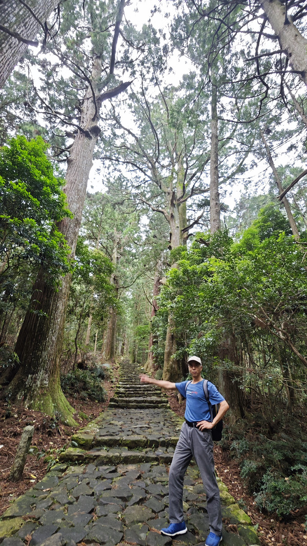 熊野古道大门坂段,保留着平安时代风貌的石板参道,两侧矗立着树龄超过四五百年的古杉树,长约一公里,连接熊野那智大社与那智瀑布。