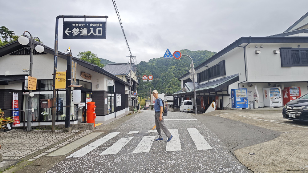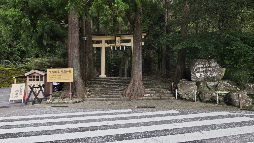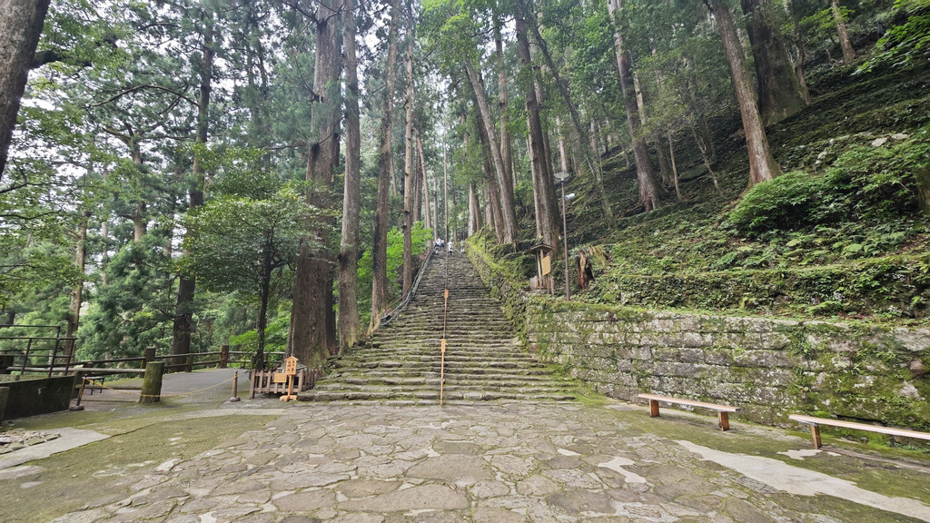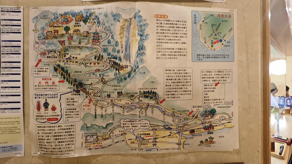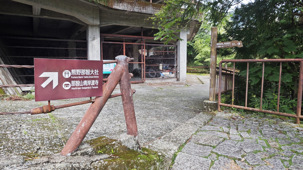 到纪伊胜浦站乘坐巴士去那智山,在大门坂站下车,从大门坂徒步至那智大社,体验熊野古道中最短的一小段。如果不想徒步,也可以直接坐车到那智山终点站(今天同车的乘客中,有一位台湾游客在大门坂下车徒步,她的朋友就直接坐车到那智山终点站与她会合)。