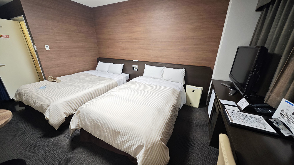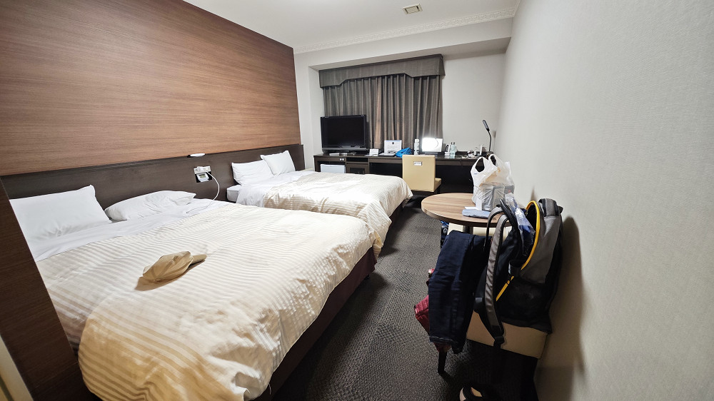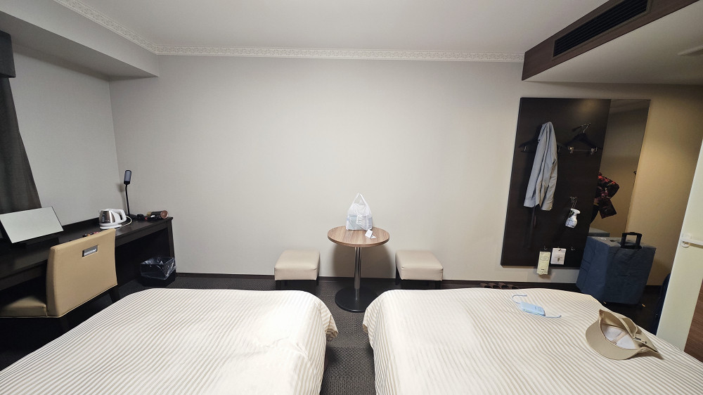 纪伊胜浦至新宫只需要二十分钟行车时间,出站后找到预订的酒店。这个酒店的大堂在三楼,奇怪的是一楼居然没有明显的酒店LOGO或指示牌,以致导航指示我到达目的地后,我愣了一回儿,周边就一座像酒店的建筑,于是走进去(建筑物的一楼没有人,有点像写字楼的大堂),在电梯旁边看的酒店的告示,说酒店的大堂上三楼。