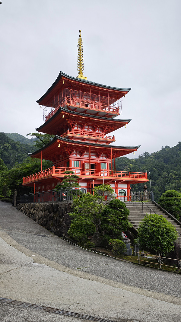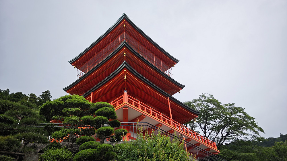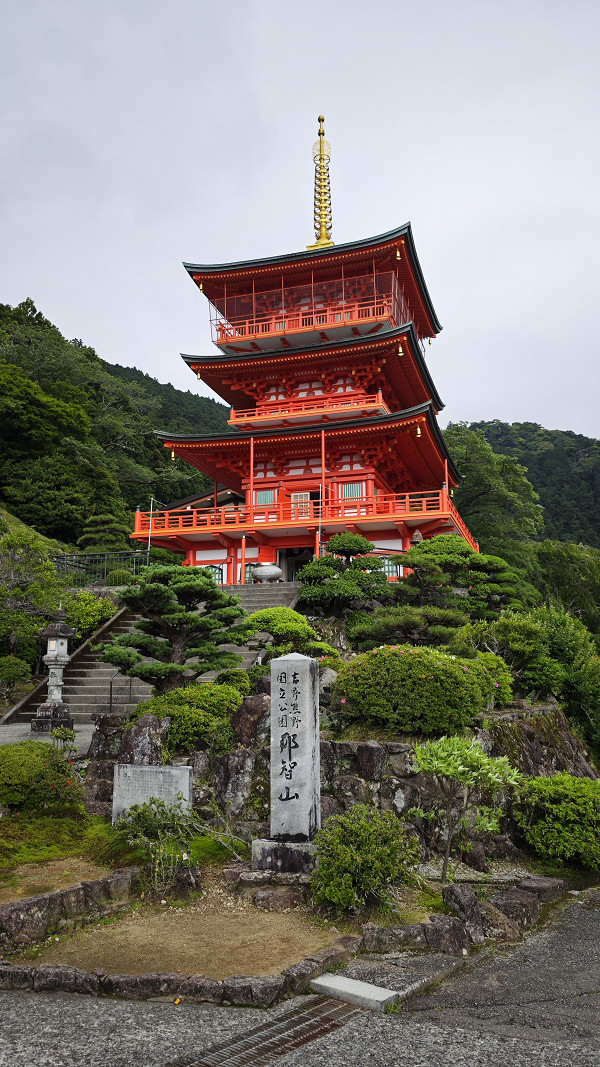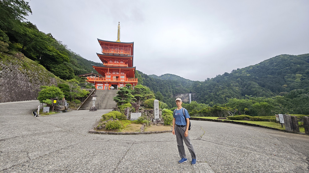 三重塔高25米,为日本传统建筑艺术代表,塔身朱红色调与后方葱郁山林形成鲜明对比,塔内可俯瞰落差133米的那智瀑布。