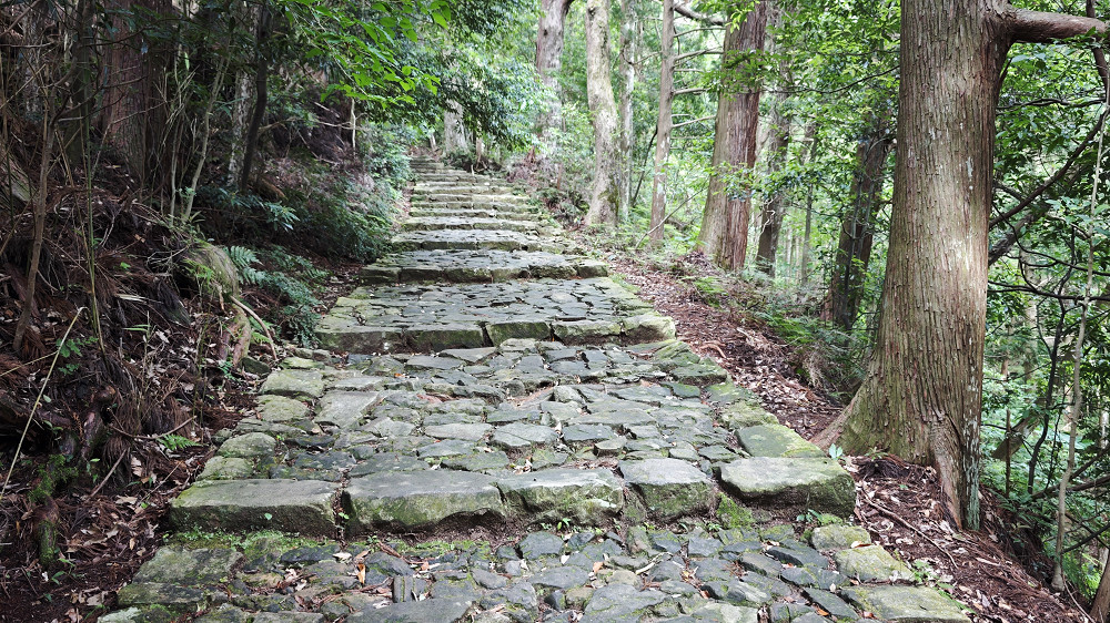 熊野古道是古时日本皇族、贵族和民众前往熊野三山(熊野本宫大社、熊野速玉大社、熊野那智大社)的参诣道的总称,是绵亘在日本本州纪伊半岛南部的和歌山、三重、奈良三县之中,穿越于崇山峻岭、原始茂林或是乡野村镇之上的七条小道。
