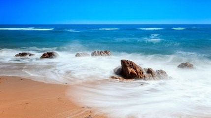 海滩上柔软的白色沙粒和碧绿色的大海相映相衬,景色十分迷人。由于海滩绵延约6公里,尽管游人较多,但不显得拥挤。延绵弯曲的海岸、银白色的幼沙以及平静碧蓝的海水构成了迷人的风景画。