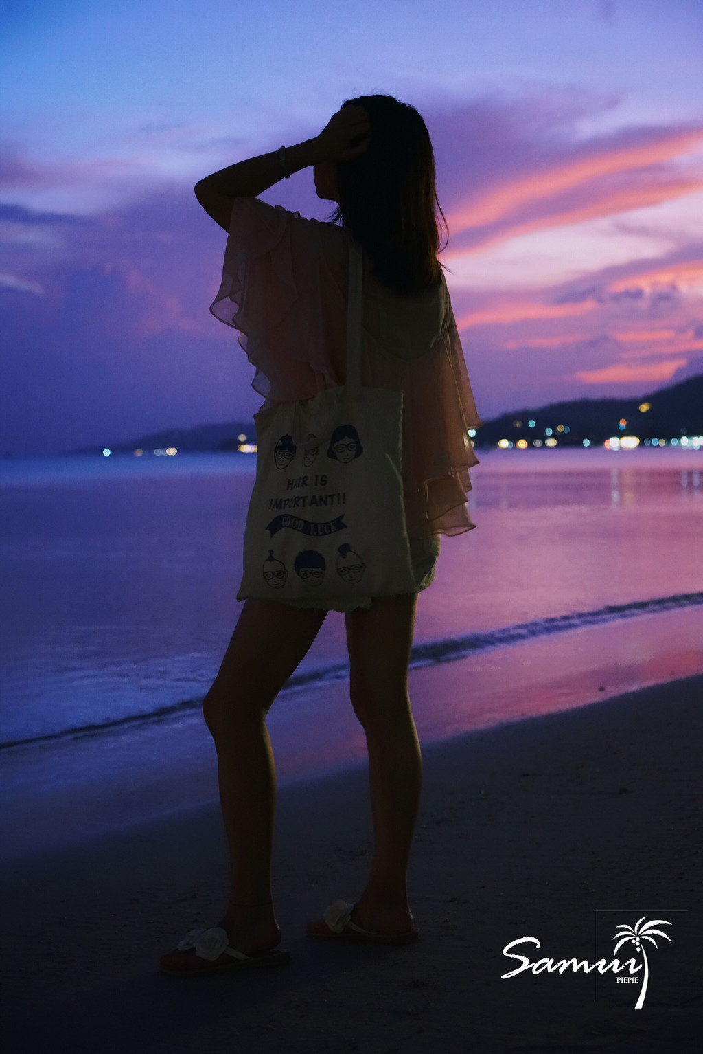 然鹅,对日落总是寄予厚望的我,当然不想看的那么不正式,毕竟这是来到苏梅的第一个日落。真的想要立刻回到酒店的海边,踩着沙子,听着浪花声欣赏绝美的暮色,才是一件惬意的事情。