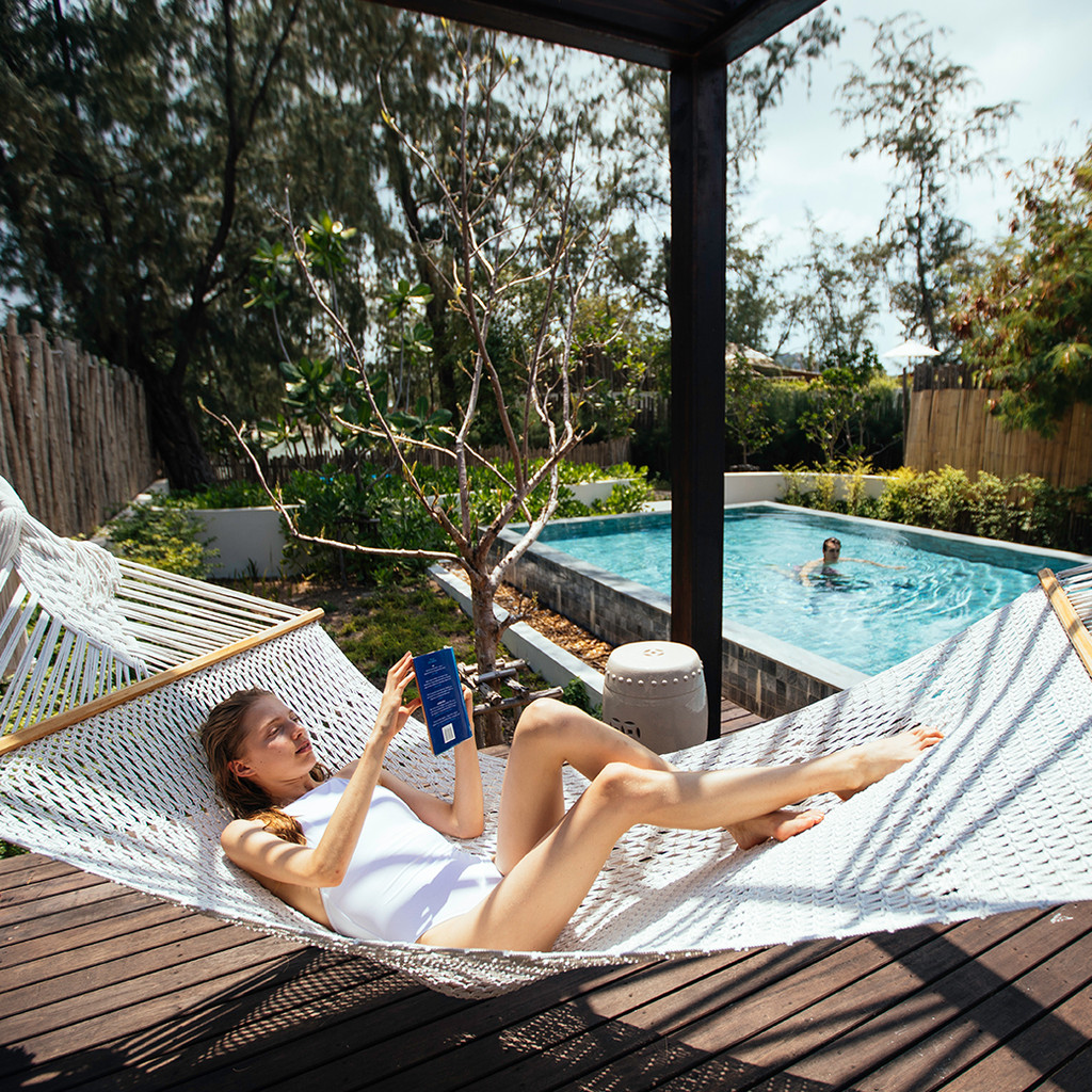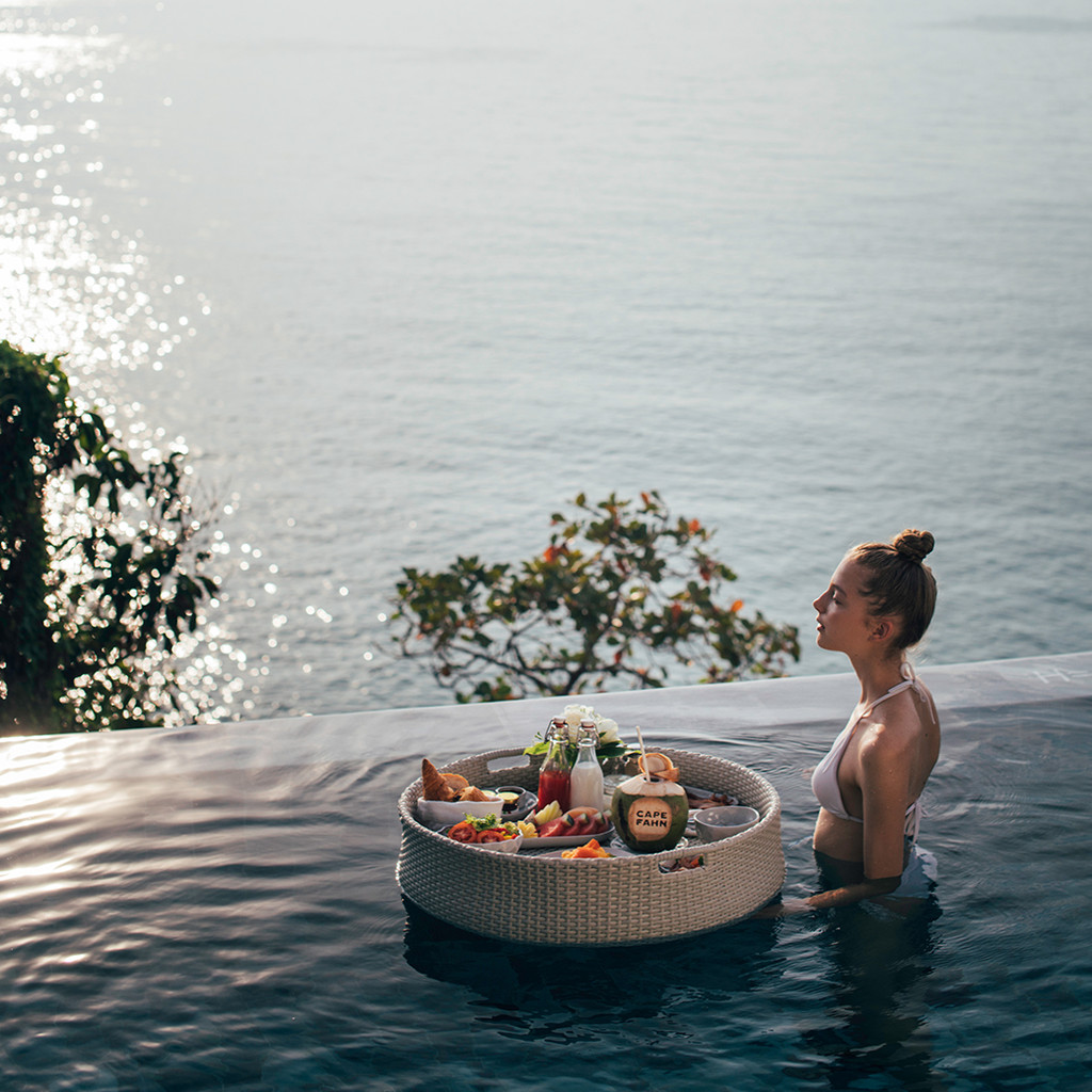 凯璞法恩酒店共有22间私人泳池别墅,散落在郁郁葱葱的花园之中,花园之外便是大海。酒店别墅面积从300平方米起步,所有别墅内都带有宽敞的私人泳池,尤其适合度蜜月的宾客。以海景泳池别墅为例,面积高达350平方米,从床边来到私人泳池边仅五步之遥,泳池边还设有阳光露台,宾客可以躺在阳光浴床上惬意地消磨时光,感受岁月静好。酒店为宾客提供了极高的私密性,无可挑剔的服务,宾至如归。