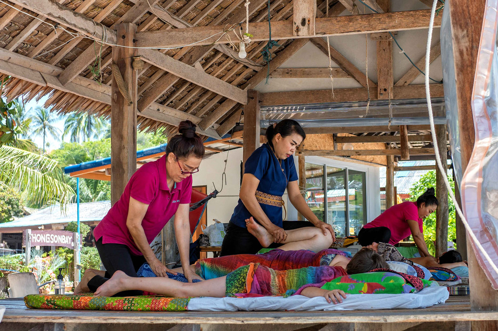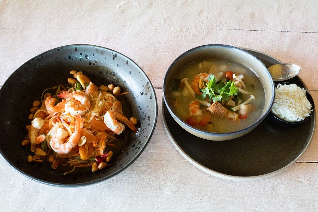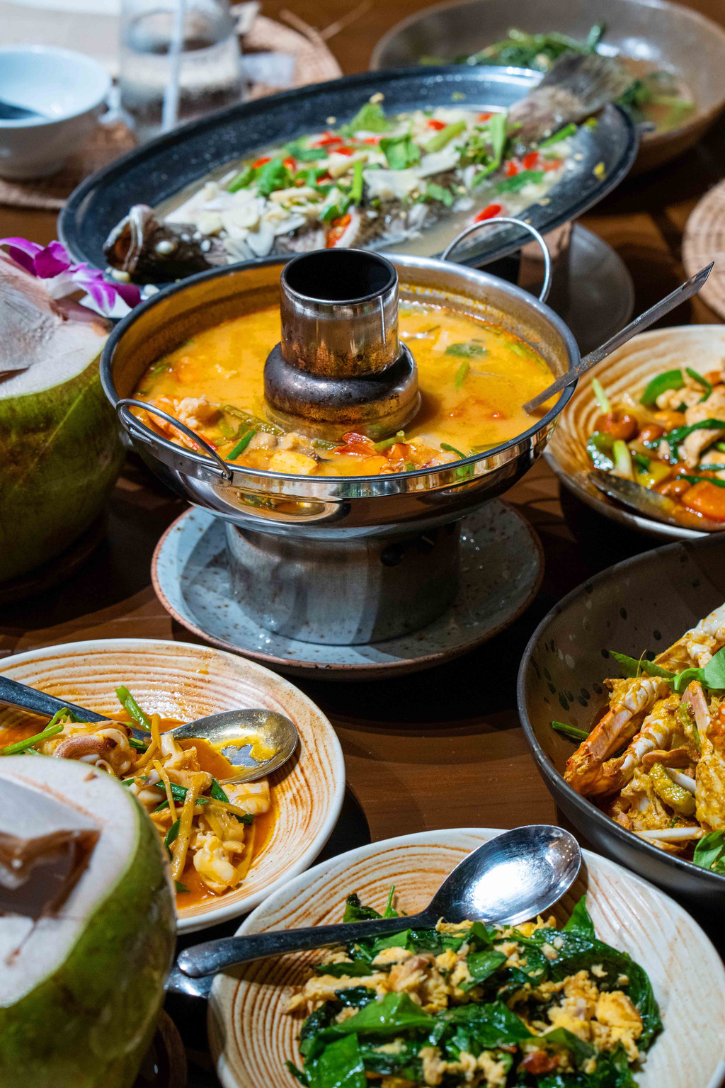坐在敞开的海滩餐厅,享受清凉海风吹拂,品尝传统家常美味,咖喱鲻鱼、木瓜沙拉、以及各色泰式小炒都非常美味。