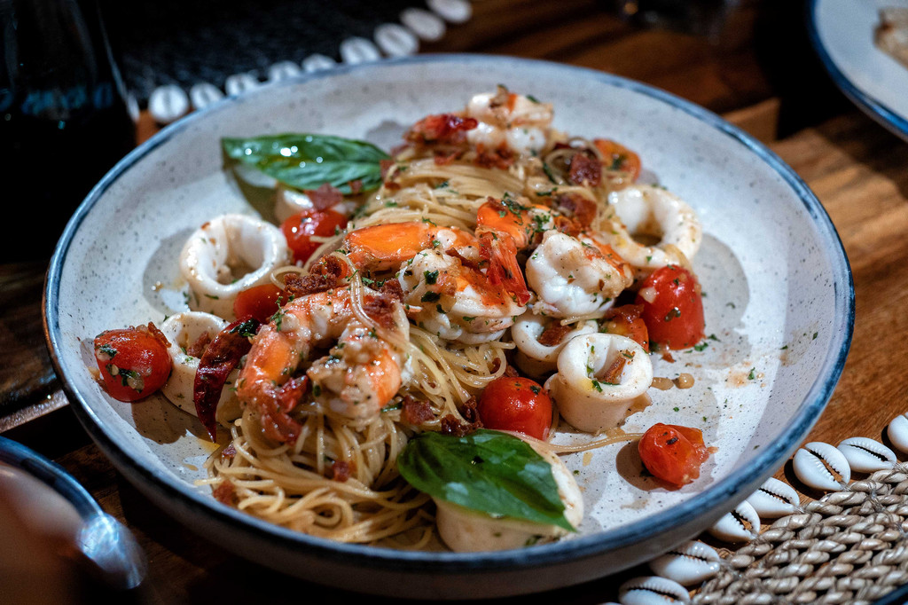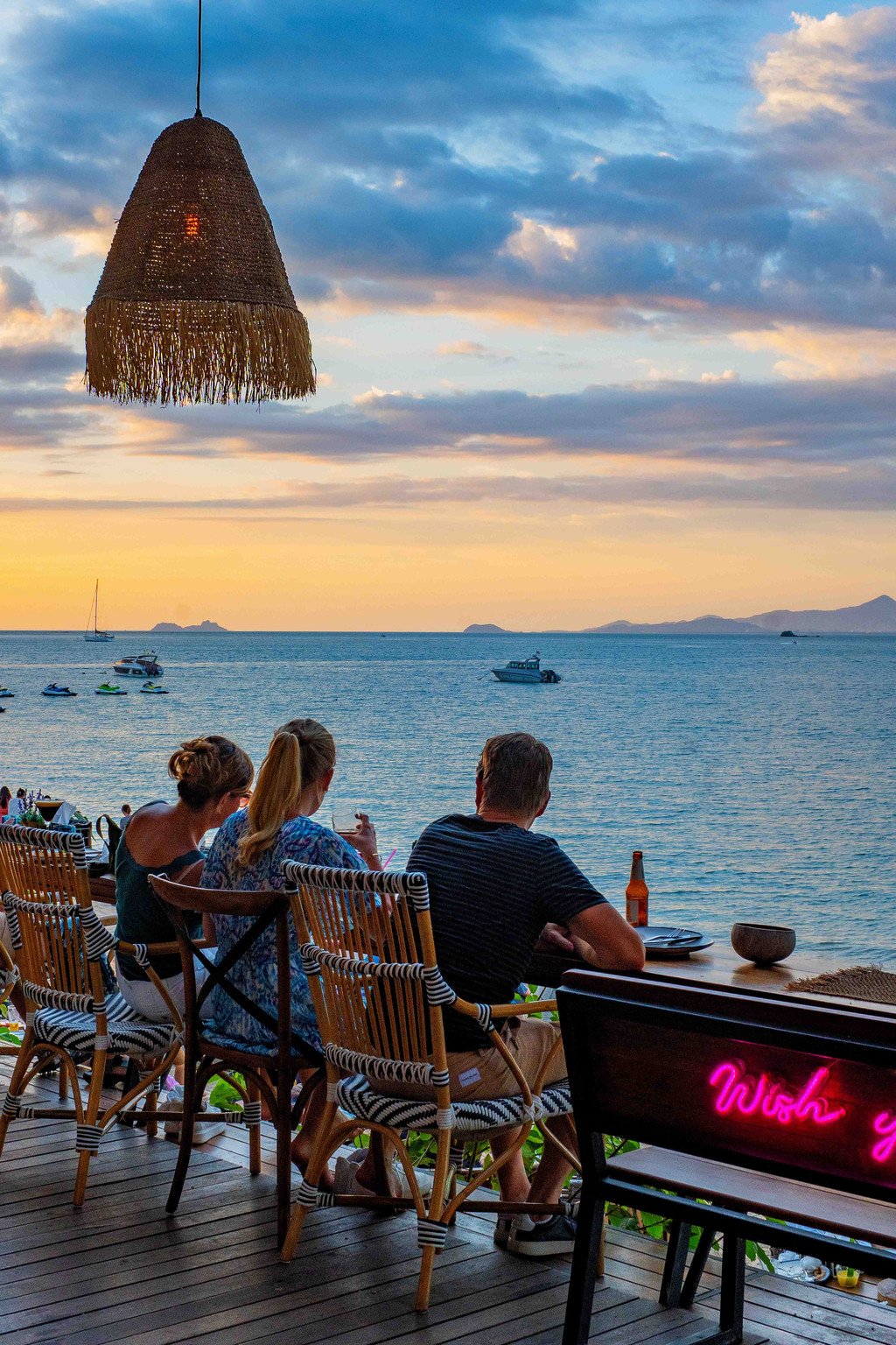 第三天体验完一天的跳岛游,大家饥肠辘辘,我们返回酒店洗澡后来到Coco Tam's海滩餐吧享用晚餐。这家非常有趣而极受欢迎的海滩餐吧,地处苏梅岛渔人村,位于苏梅岛码头购物中心外。