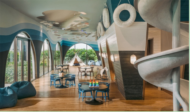 酒店为勇敢冒险的小客人量身定制的 Junio 儿童俱乐部则是一个占地 500 平方米的乐园,其设计灵感来自热闹的海滨港口。这间儿童俱乐部围绕真实的游戏体验、积极探索和冒险进行设计之外,还将提供一系列考虑周全,能够激发感官的非科技活动,以吸引孩子们的注意力,引领他们的想象力扬帆起航。
