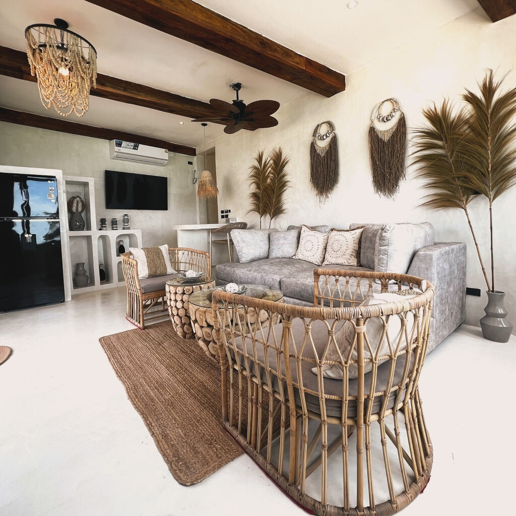 🛌 度假村共有 12 栋别墅,每栋都能欣赏海景,有的还配备露天按摩浴缸。房型从单间到三卧别墅应有尽有,部分为海滨房,可直接步入沙滩。室内采用白色与奶油色调,风格简洁优雅,木质与布艺材质让空间更显温馨。设施齐全,包括室外泳池、沙滩躺椅与休憩区,让客人尽情享受海边的惬意时光。