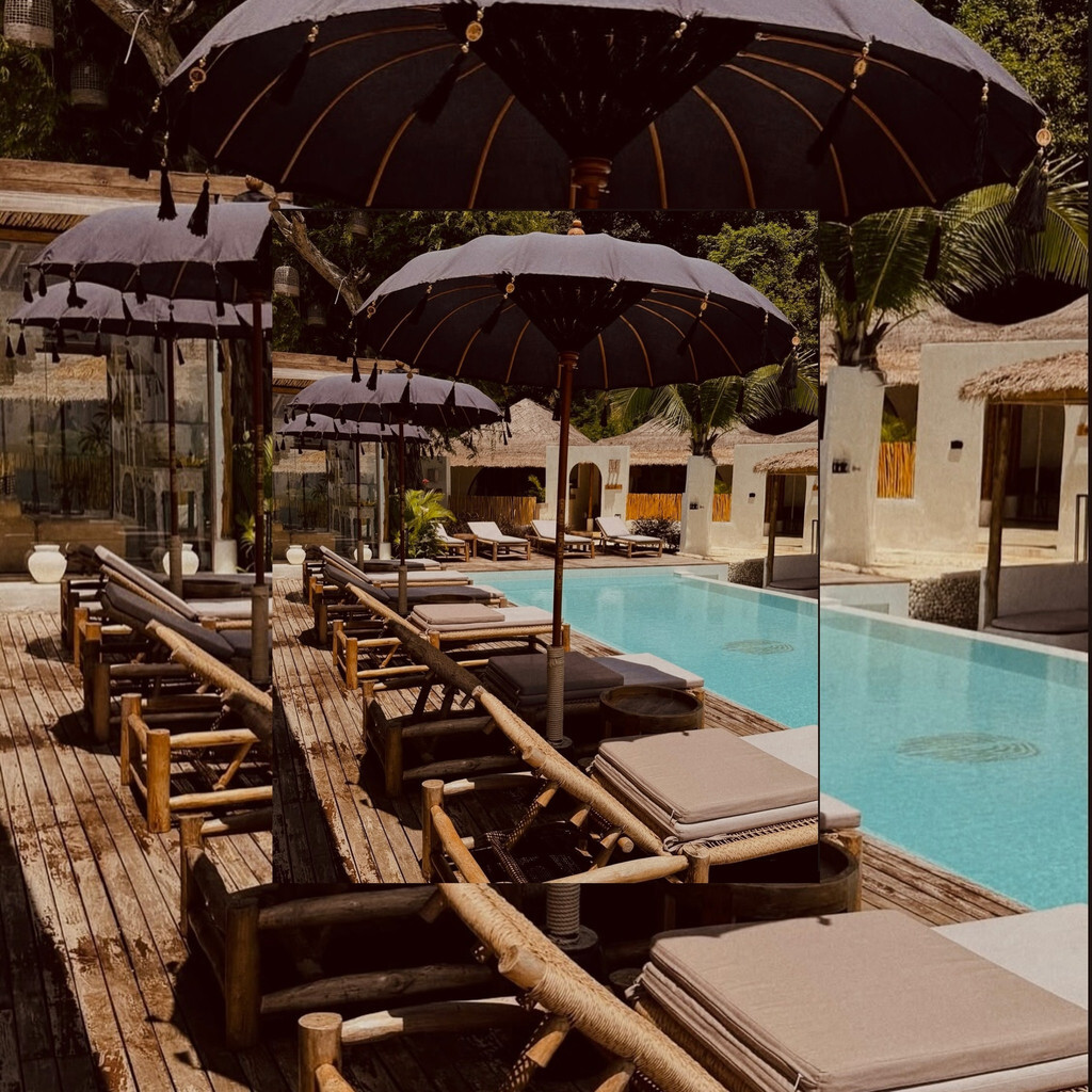 🍽️ 这里的亮点是 Cape Away Beach Bar —— 一个被自然环绕的海边酒吧,设计温暖有格调,如同好友的秘密海边小馆。设有海边木桌、沙滩豆袋椅、躺床区与茅草顶用餐区。夜晚灯光与烛火映照海面,浪漫氛围令人沉醉。傍晚“黄金时刻”更是观日落、听海浪、品鸡尾酒的完美时光,每逢周日还有火舞与现场音乐表演,为夜色增添独特魅力。