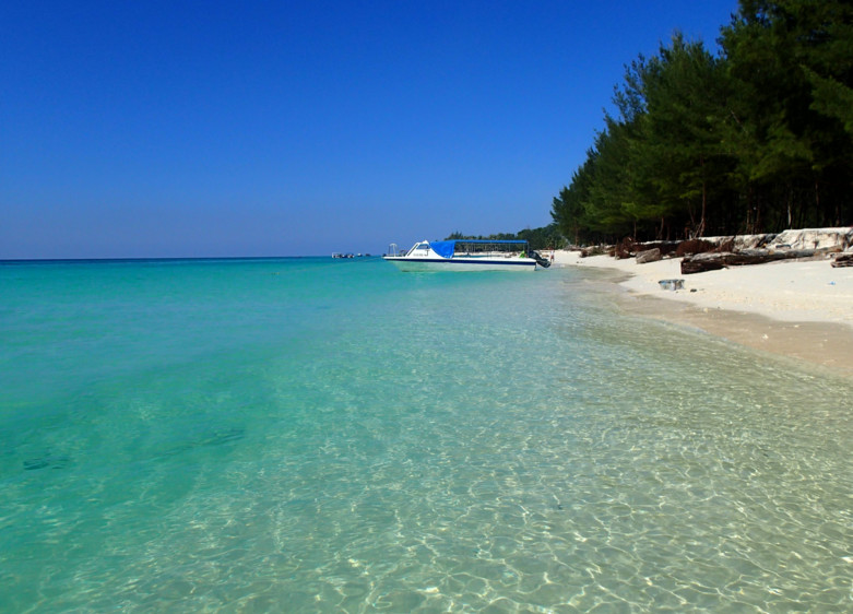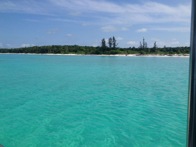 没多久就坐着快艇离开码头,海面逐渐变宽。乘船1小时后,周围海水的颜色逐渐从深蓝色变为绿色,这意味着我们的目的地环滩岛到了。环滩岛之所以被叫环滩岛,是因为整个岛屿的形状大致不规则,岛周围的圈子是海滩。这个岛曾经是一个私人岛屿。它近年来才向公众开放。