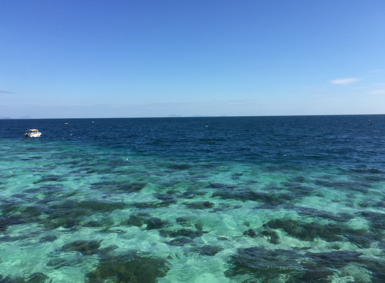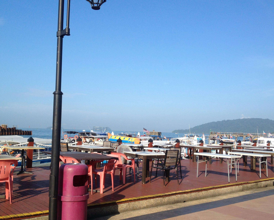 我们住的酒店酒店提供的早餐种类繁多,味道不错,最重要的是一个海景露台,边吃边享受海景,非常舒适。吃过早餐,我们才兴冲冲奔往环滩岛,码头距离酒店仅有约5分钟的步行路程。各种快艇游轮停靠在码头岸边,这片蓝色的大海看起来就像一颗明珠。