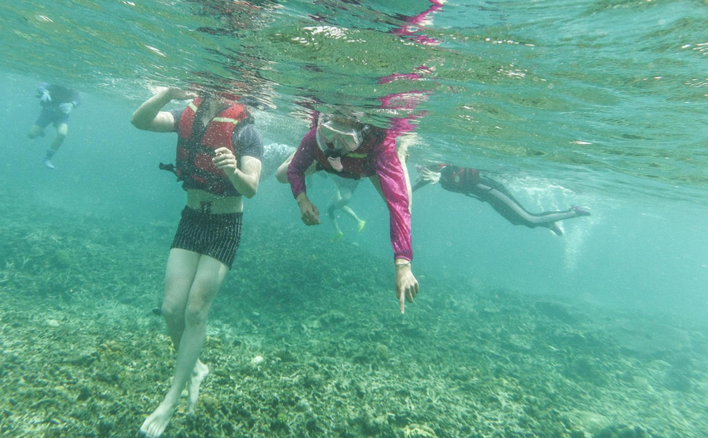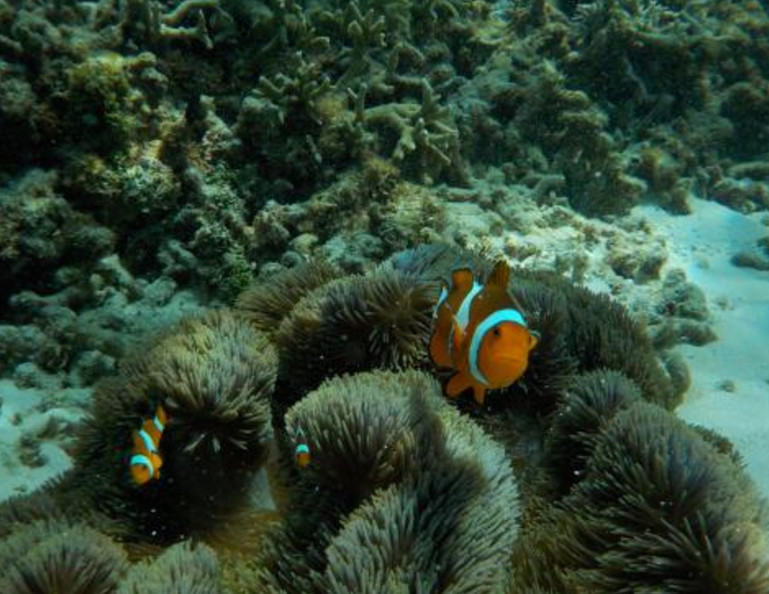 而我们报名参加的一日游里,有浮潜和出海捕鱼,导游非常热情,不耐烦得教我们如何潜水,使用我们的水下相机潜入底部小丑鱼和海葵,虽然一小时的浮潜是短暂的,但海底世界的美丽却令人十分难忘。