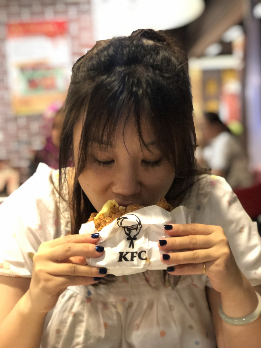check in后我们去逛了商场,看到KFC出于好奇进去品尝了一下,呵呵。点了一个两层鸡腿肉中间夹培根的汉堡。满足