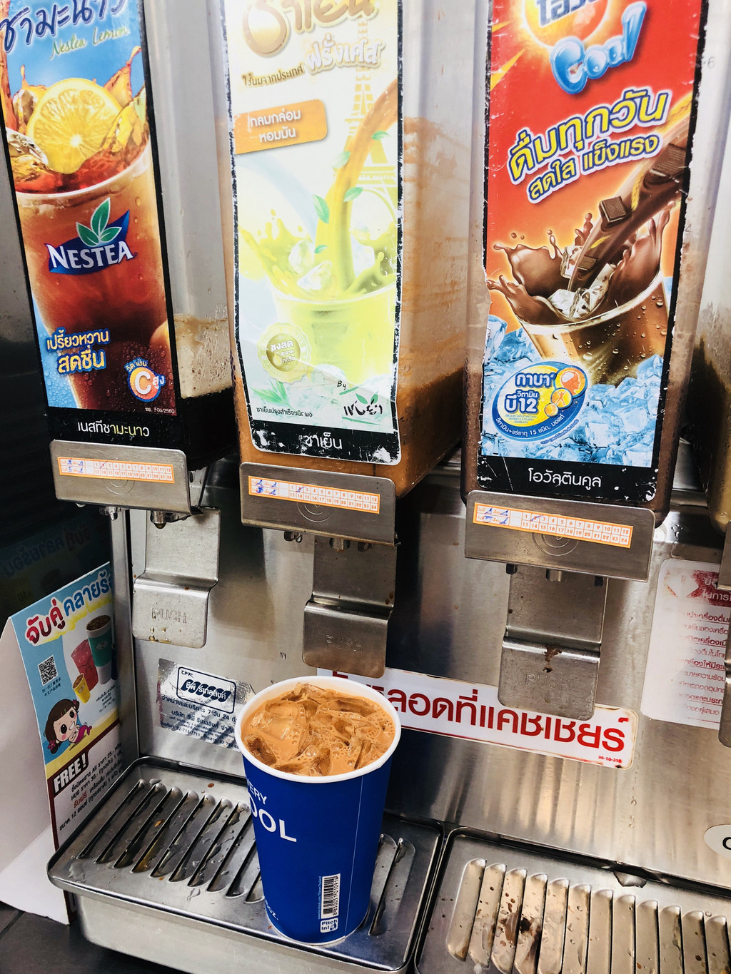 由于到达已经快晚餐时间了,所以check in后我们直接逛吃。泰国711的奶茶是一定要喝的,而且一天起码得来他个7、8杯才过瘾。