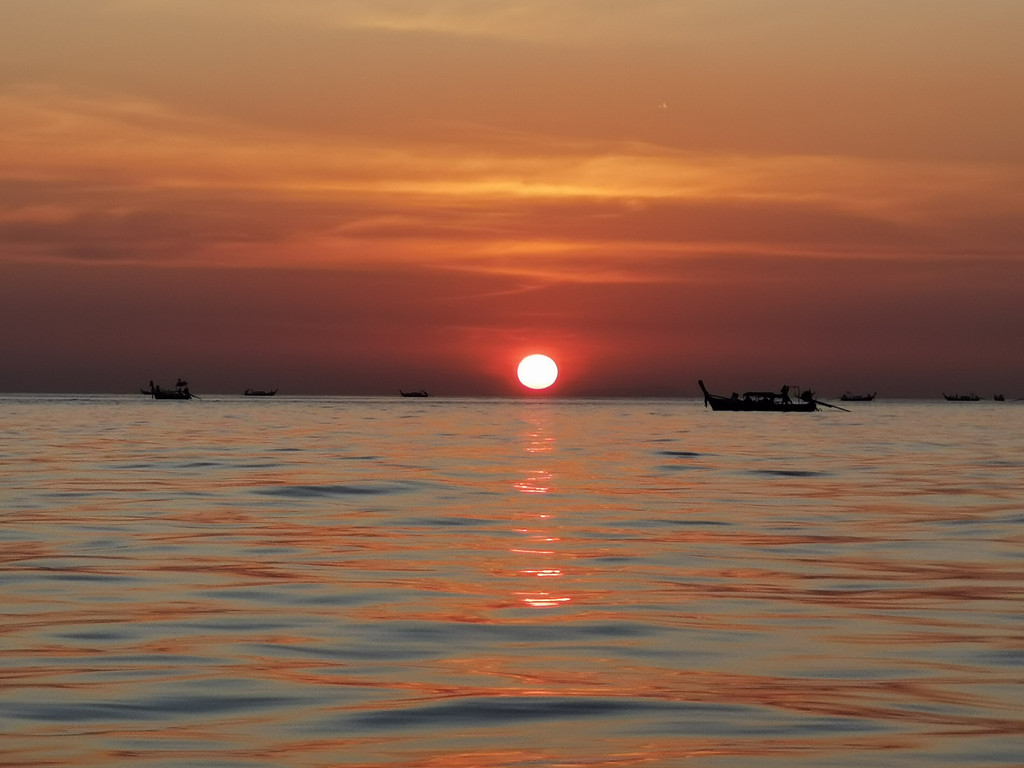 我们上午坐大船去皮皮岛,下午包长尾船游玛雅湾、皮雷湾、维京洞穴、鲨鱼点等,南岛周围有很多浮潜点都不错,维京洞穴、皮雷湾、玛雅湾等,有很多鱼,水也很干净,记得带面包引鱼。鲨鱼点是北岛长滩最南端的一个浮潜点,运气好的话能看到鲨鱼,海胆、鱼很多,还有海参。玛雅湾只浮潜不登岛的话,不用交400泰铢登岛费。因是春节旺季,我们到达皮皮岛后包下午出海的长尾船,价格已经很高了,最后找到一个船家(不是中介门头),谈好4000泰铢包船。如果能英语交流的话,最好提前1、2天找预定的酒店预定包船,能明显的便宜,我们住的酒店说如果订第二天的船,价格是3800泰铢,还是豪华长尾船(船头铺上软包,有装饰的那种),我们包的是普通船。另外,很多人在码头附近找船,人少的话也可以合租。当然人少也可以拼船出海,相当于报团的那种。鲨鱼点浮潜后船长把船开到大小皮皮岛之间的海域,欣赏了壮丽的海上日落。