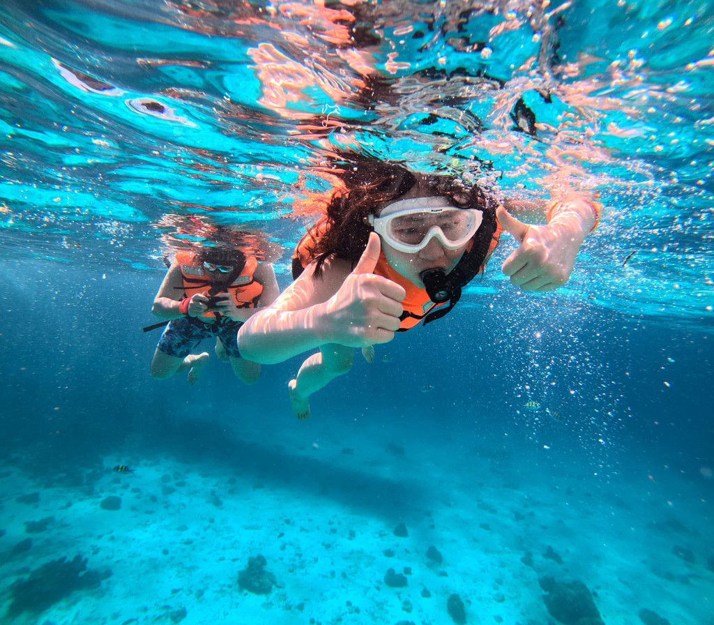 洛克岛:不仅适合浮潜,更是深潜爱好者们的乐园,是泰国顶级潜水地之一。运气好的话,还能看到海龟和珍贵的红珊瑚哦!洛克岛的清晨和傍晚最美。洛克岛+哈岛每人2400泰铢,但要确认是否含上岛费。我在网上定的,价格399元/人,不含上岛费400泰铢,含早餐午餐和冰镇水,银梭号快艇(海王号价格稍低一些)。在奥南海滩酒店接人后先坐车到码头(坐车1小时,应该是koh jum码头),行程主要就是3次浮潜和洛克岛上午餐、休息拍照,浮潜一次40分钟左右。强烈建议吃晕车药!我途中还没晕,但到了哈岛浪太大,船停住进行浮潜,晃的更厉害,很快就晕了,很难受,好几个人都吐了,当然也包括我。一开始浮潜很不适应,主要是不习惯用嘴呼吸,一不小心用鼻子呼吸就呛水,太难喝了。最好用鼻夹,会游泳的话也可以不用浮潜设备,屏住呼吸来浮潜,只是要经常浮出水面换气,习惯的话最好还是用浮潜设备。救生衣要穿,否则坚持不了多长时间,离船远了还有危险。浮潜镜要带好带紧,才能清楚地看海底景色。因远离陆地,洛克岛哈岛海水很干净,很漂亮,高级果冻海,浮潜景色也很好,只可惜第一次浮潜不太适应,加上晕船(因自负没吃晕船药),体会不深。