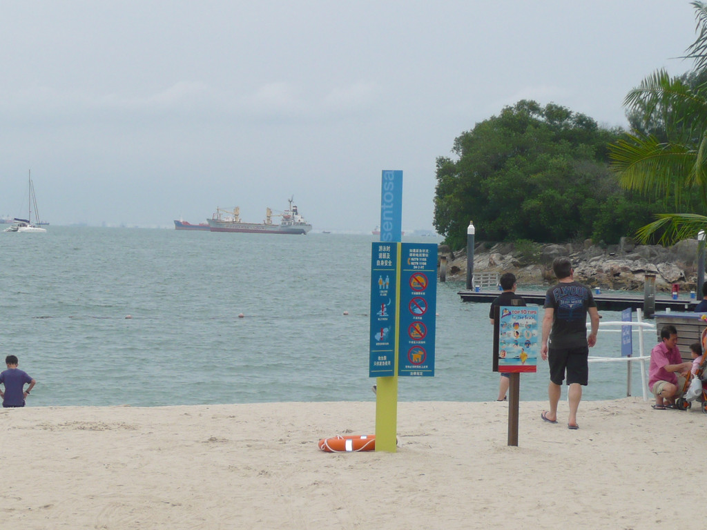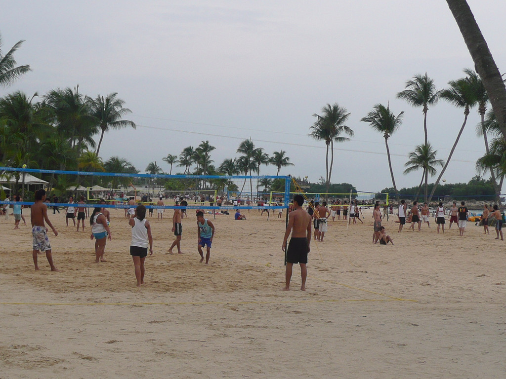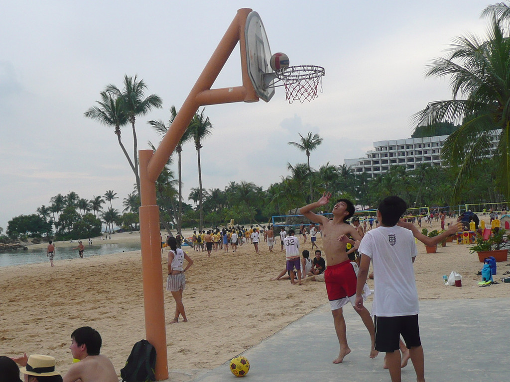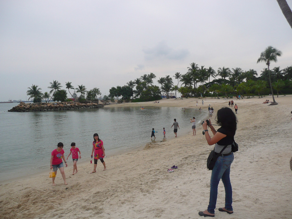 圣陶沙海滩由三个各具特色的海滩组成:丹戎海滩,巴拉湾海湾和西乐索海滩,他们绵延3公里。我们去了中部和西部的巴拉湾海湾和西乐索海滩。海水不好,比较脏,远不如沙巴的海滩。沙滩体育、游戏设施不错,有排球场、足球场、篮球场。海滩边的公路可骑车、轮滑。