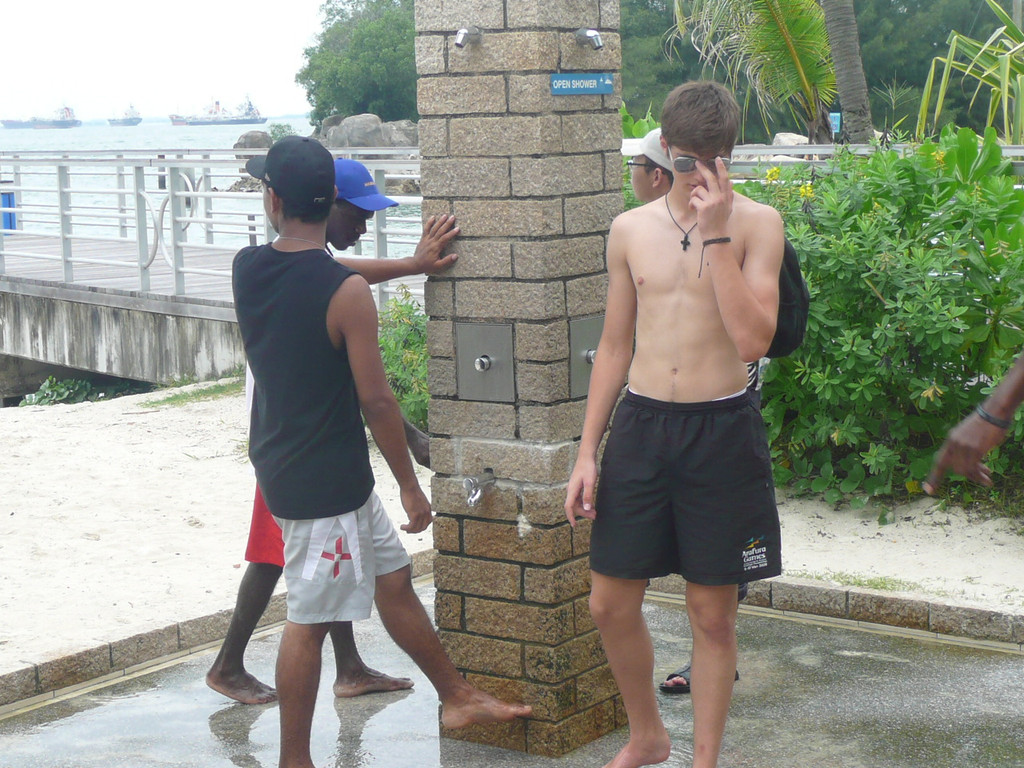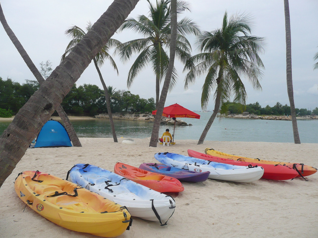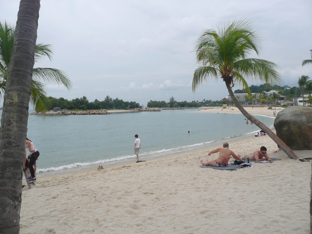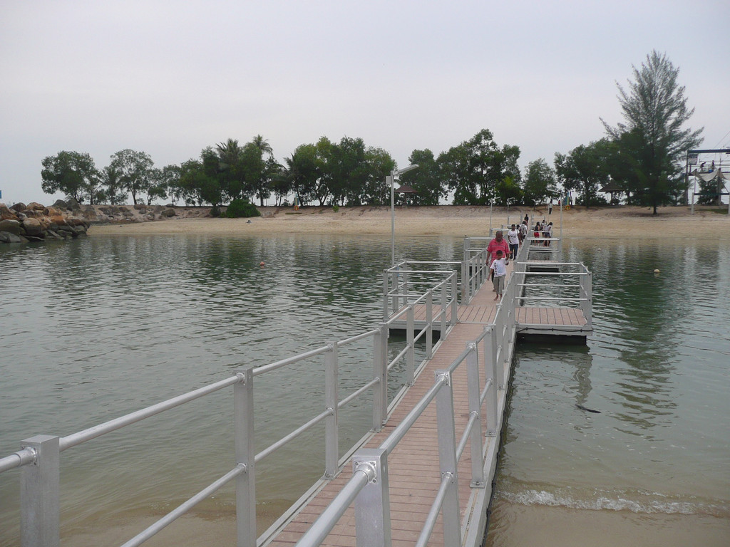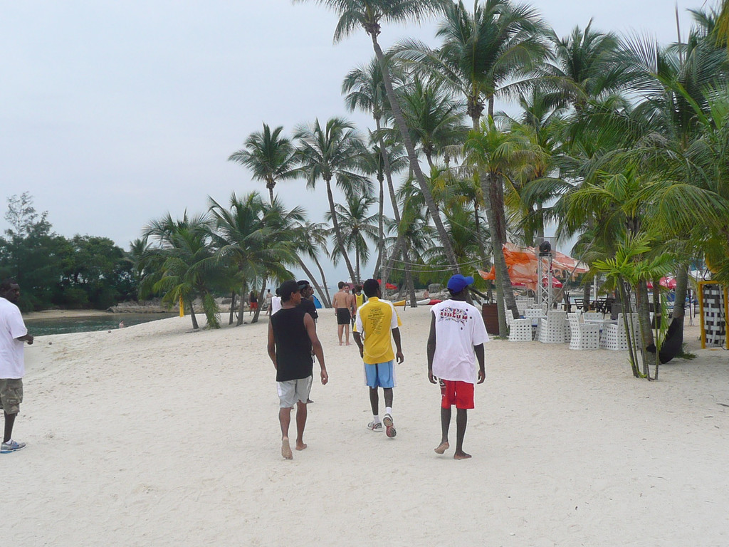 圣陶沙海滩由三个各具特色的海滩组成:丹戎海滩,巴拉湾海湾和西乐索海滩,他们绵延3公里。我们去了中部和西部的巴拉湾海湾和西乐索海滩。海水不好,比较脏,远不如沙巴的海滩。沙滩体育、游戏设施不错,有排球场、足球场、篮球场。海滩边的公路可骑车、轮滑。