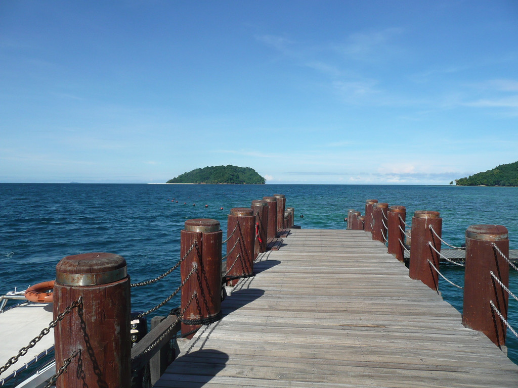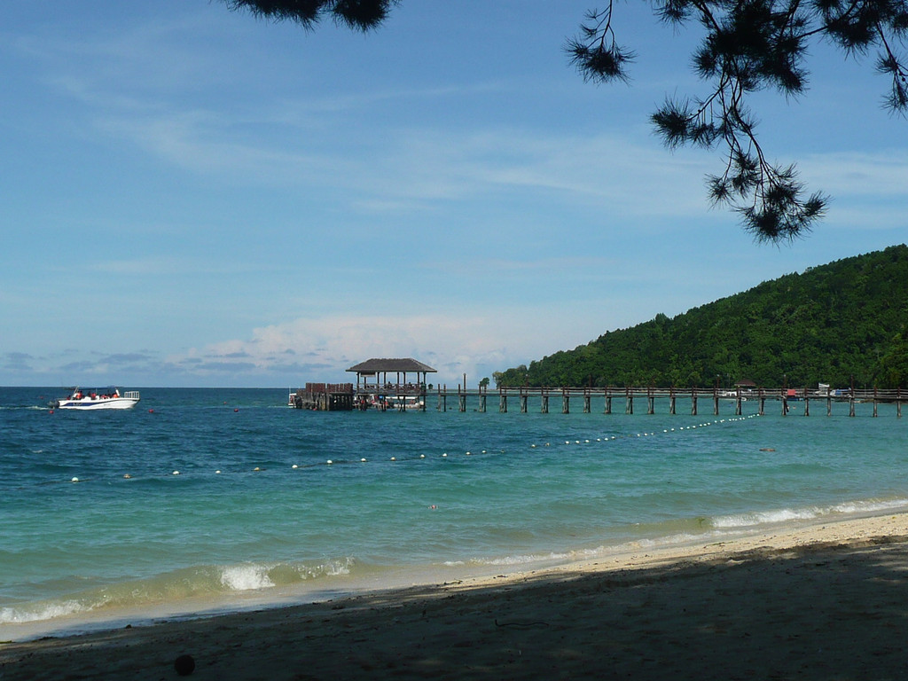 在这里玩到12点然后乘船去沙碧岛(Sapi),这里椰林树影,水清沙幼。珊瑚礁离海岸很近,适于潜水。这里的海里鱼类丰富,五颜六色的热带鱼。