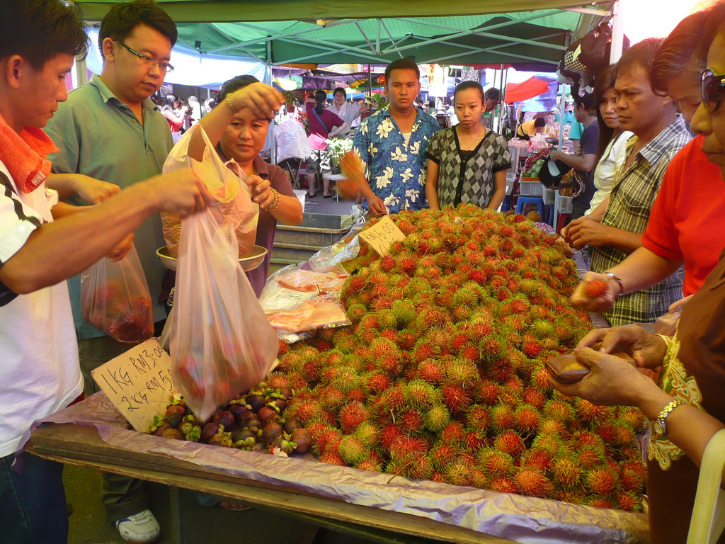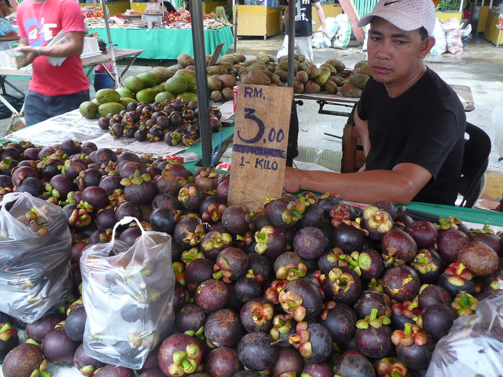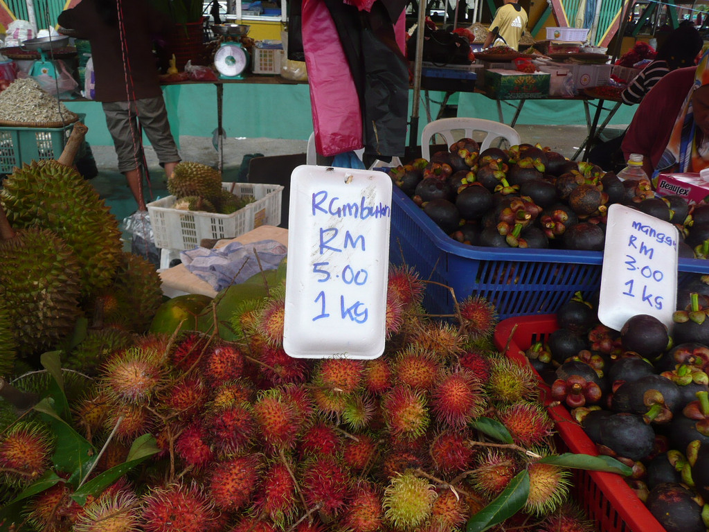 婆罗州一号(1Borneo)离城市中心约10公里,市里班车站附近就是著名的菲律宾市场,这里水果太便宜了,切好的混合水果1马币一盒,山竹3马币(6块人民币)1公斤,红毛丹4马币1公斤。我们买了2公斤的山竹,非常新鲜。