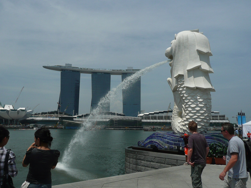 先去看了看新建成的卡西诺,外国人凭护照免费进入,新加坡本国人不得进入。环球影城的票卖完了,只在外面看了看,然后去37米高的鱼尾狮塔,这是新加坡的旅游标志,下来去海滩。