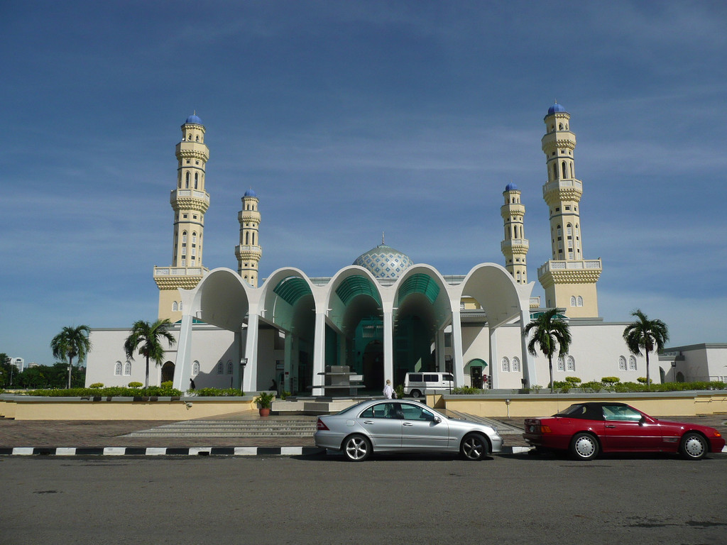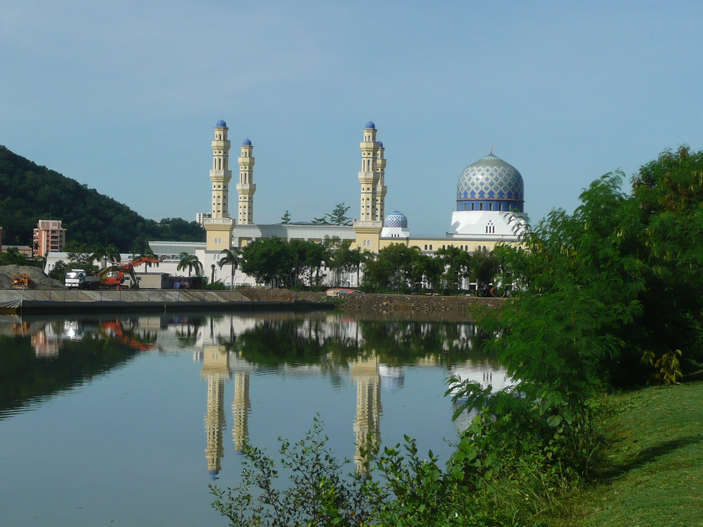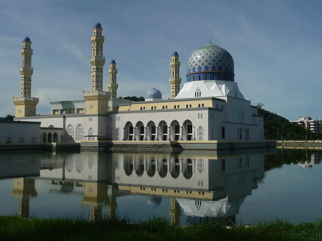 亚庇市立回教清真寺是一座典型的当代伊斯兰教建筑,座落在里卡士湾畔(Likas Bay)的这座市立回教清真寺是市内最大,乃至马来西亚国内最壮丽的回教堂之一。这座占地一公顷,于1997年建成的清真寺可容纳9,720-12,000名教徒祈祷。它建于里卡士湾的人造湖上,感觉上有如浮在水面上的清真寺。如此令人惊叹的白色建筑物造型,与蓝天完美的连成一体。