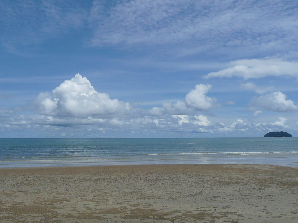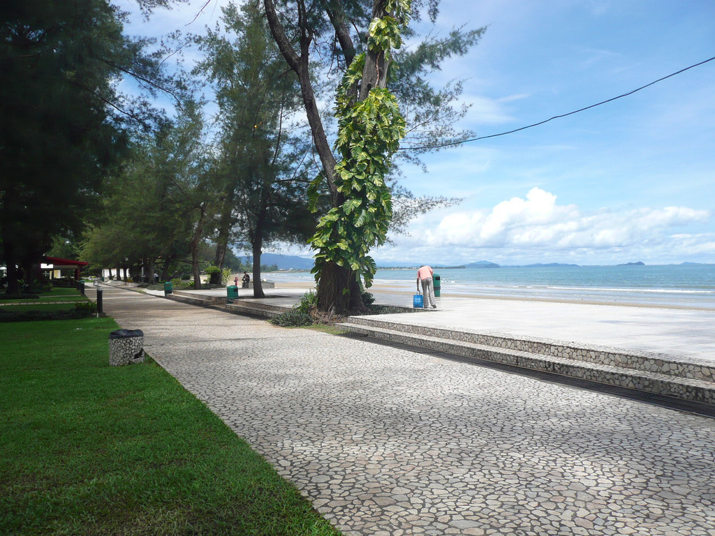 从清真寺出来,沿着里卡士海滩闲逛,这里很安静,几乎没有游客。逛累了就在路边拦一辆公交车到汽车总站,然后乘16A去丹容亚路海滩。这里是游客和沙巴本地人的休闲之地。三面环海,海面开阔,远处的地平线一览无余。这里是看日落的首选之地。海滩旁的菲力王公园是一个美丽的花园和提供娱乐活动的好地方。附近的露天摊档为访客们提供了许多美食的选择。坐在那里品尝鲜美的椰汁,服务员最后把椰子砍开,请你吃椰肉。那里的鲜榨火龙果汁真是太美味了,一下要了两杯。