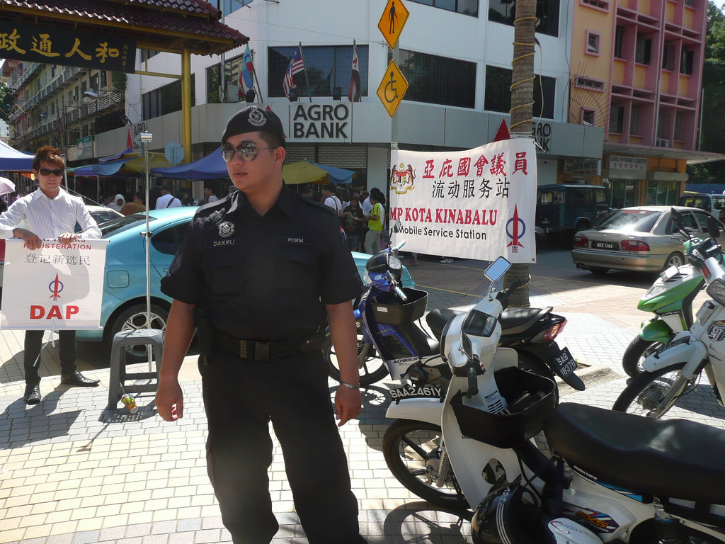 亚庇市的国会议员在这里开了一个流动服务站,向选民提供各种帮助。医疗机构也在这里开办义诊活动。