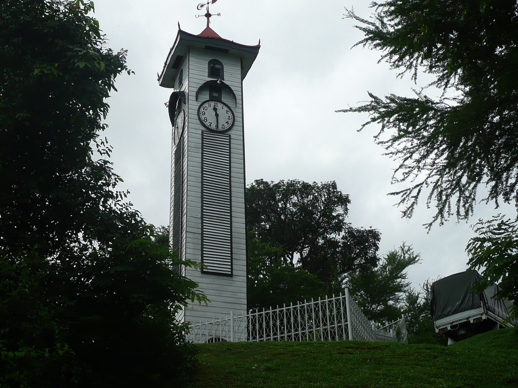 随后我们去参观艾京生钟楼(Atkinson Clock Tower)。钟楼是亚庇的第一任总督法兰西斯乔治.艾京生母亲玛丽埃迪特女士,于1905年在巴莱士山(Brace Hill)上建立,以纪念28岁英年早逝的总督儿子。这座钟楼从建成到1956年一直都是进入港口船只辨识方向的导航装置。