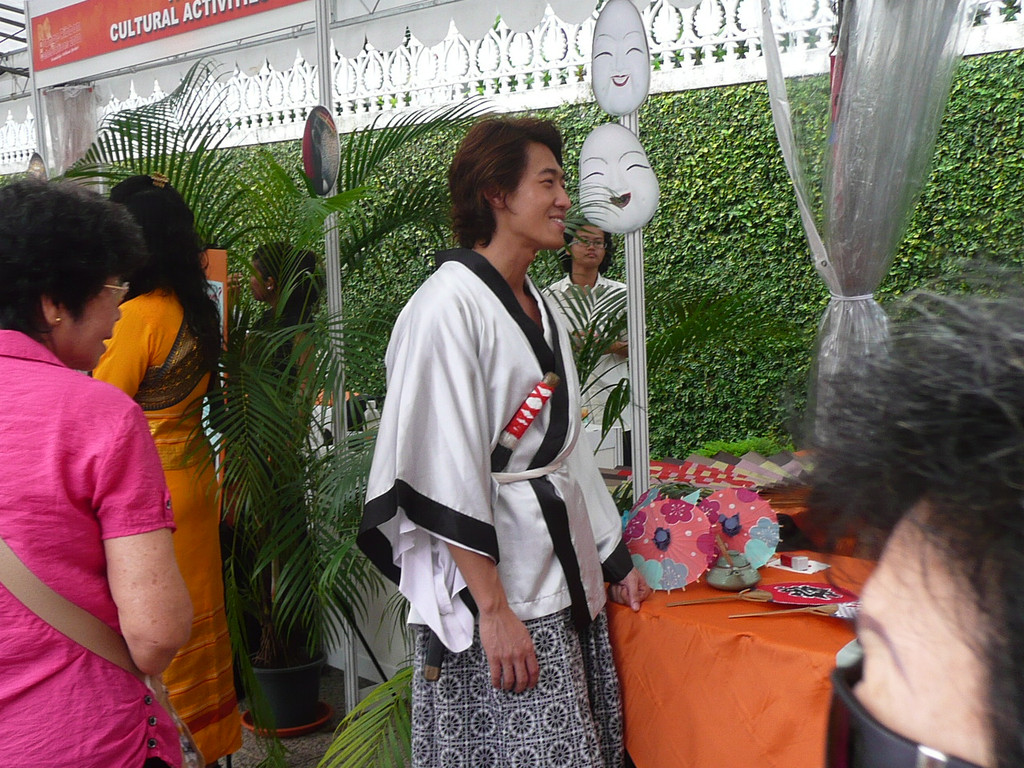 回到酒店,购物中心正在举办国际民间文化节的演出,很多国家的人身穿漂亮的民族服装表演最具本国特点的民族艺术节目。可惜没有看见中国大陆的文艺团体,台湾的一个民间歌舞团是这里注目的焦点,演出结束后大家都围上去合影。