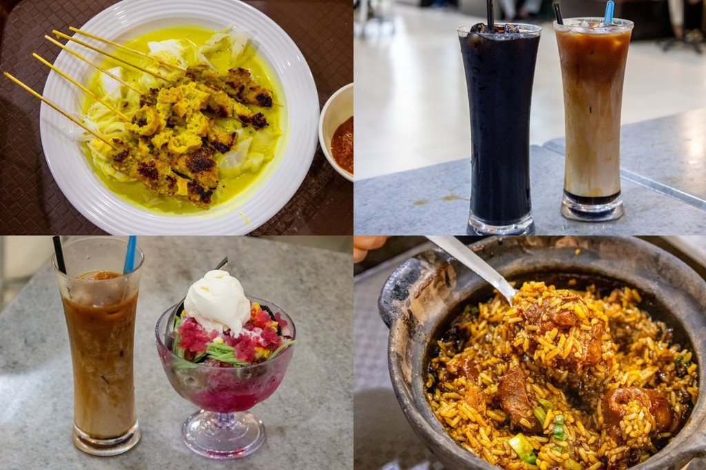 南香白咖啡 我们的午饭在这里吃的,物价感人,比吉隆坡便宜了好多,像大排档一样茶餐厅,给人一种穿越感,人均10-15块能吃到好吃的芽菜鸡、猪肠粉、鸡丝河粉、咖喱粉等特色美食,猪肠粉吃上去软软弹弹,配冬菇汁非常美味。店里的仙草豆浆也是一绝,2.5马币一杯,解暑又降火。点的餐都是现场炒,大锅大灶的烟火锅气非常的迷人。