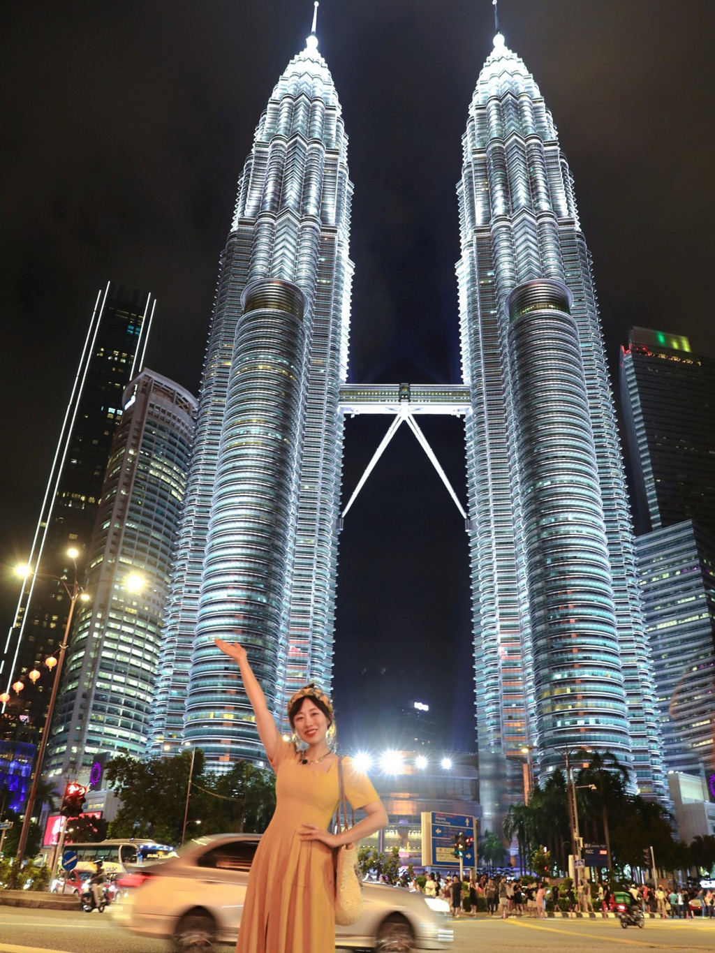 安全岛→推荐理由:这个打卡点是通过Google maps搜索public bank找到的。银行门口的十字路口有等红绿灯的岛台,可以拍到双子塔全景,又不会拍到太多人群。不过靠近马路时一定要注意安全,马来西亚的摩托车非常多,开得也很快。