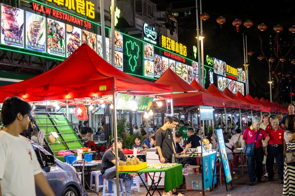 著名大排档美食街,游客多价格偏贵,和国内一线城市消费差不多,特色食物👉🏻烧鸡翅、葡萄牙烧鱼、炒裸条、 罗惹、沙爹、尤鱼蓊菜、猪肉粥、亚三叻沙、药材炖汤、海鲜点心、肉骨茶