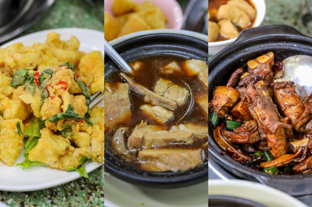 除了肉骨茶之外,还推荐猪肚汤 , 蛋黄鱿鱼 , 泰式豆腐 , 海鲜炒饭 ,马来传统饮品推荐罗汉果冬瓜水和竹蔗茅根水。